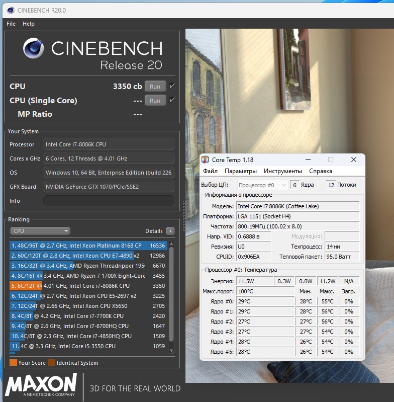 спасибо за советы. так как купил более дорогой корпус, чем рассчитывал, кулер пришлось брать максимально бюджетный. взял ID-COOLING SE-214-XT. 8086k в стоке, память в XMP. Tемпература на рабочем столе 27-29 градусов, в cinebench20 54-56 градусов. очень доволен.