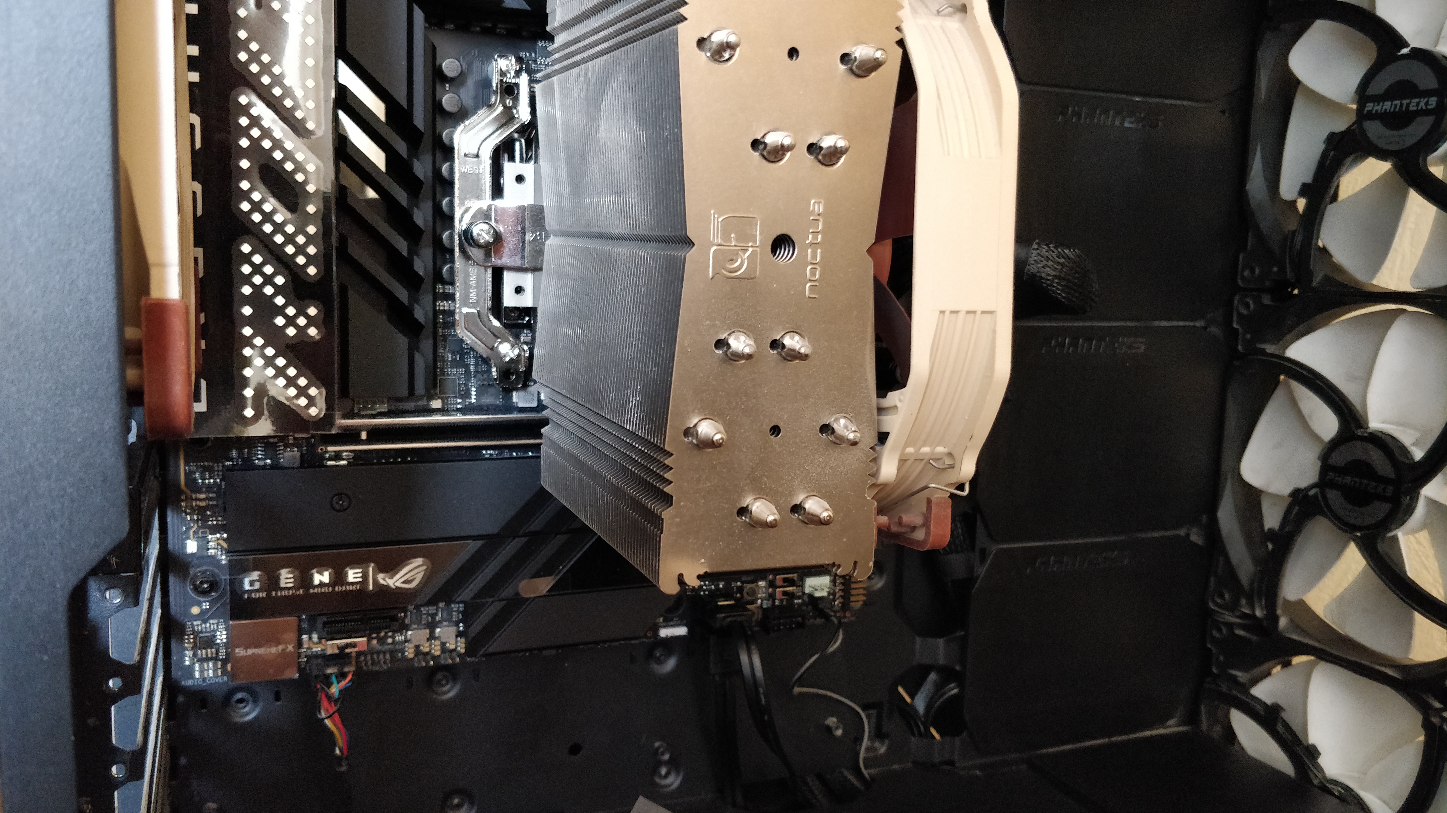 Michailovsky Полезу переставлять вентили. Я большой неправильно поставил, в попытке максимально убрать провода. Его нужно повернуть на 90 гр. + У меня идея - вместо маленького 120 поставить 140 от DR - благо по габаритам они одинаковы, над плашками озу должен встать.