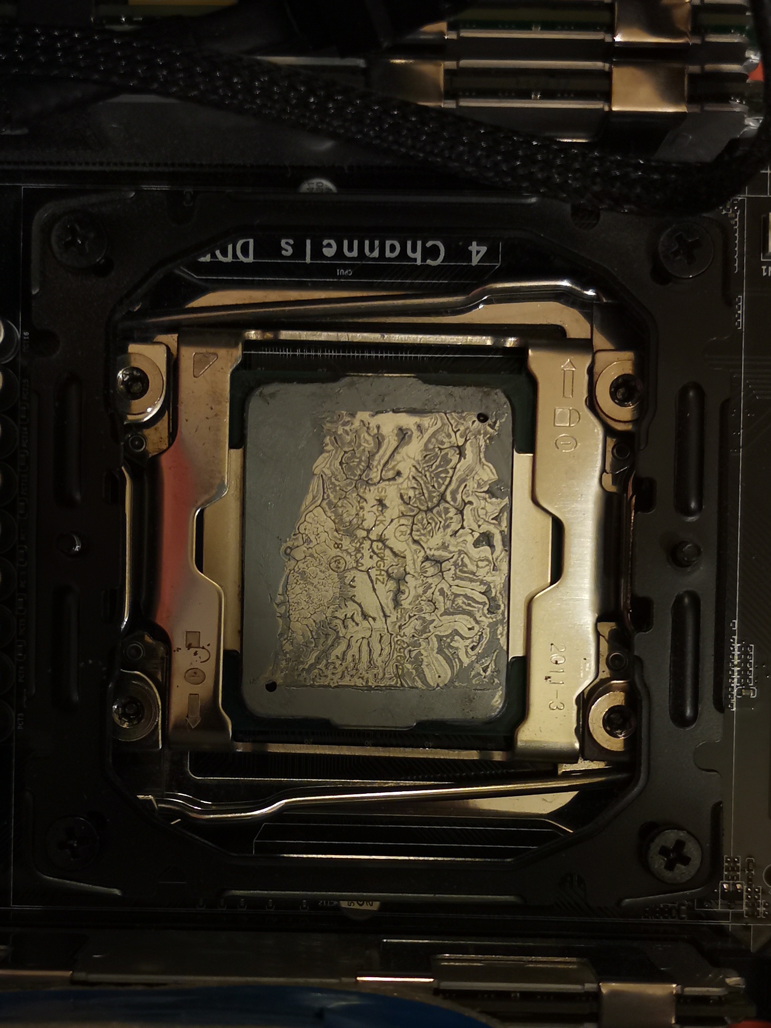 Не рекомендуется использовать между крышкой процессора и подошвой кулера жидкий металл.