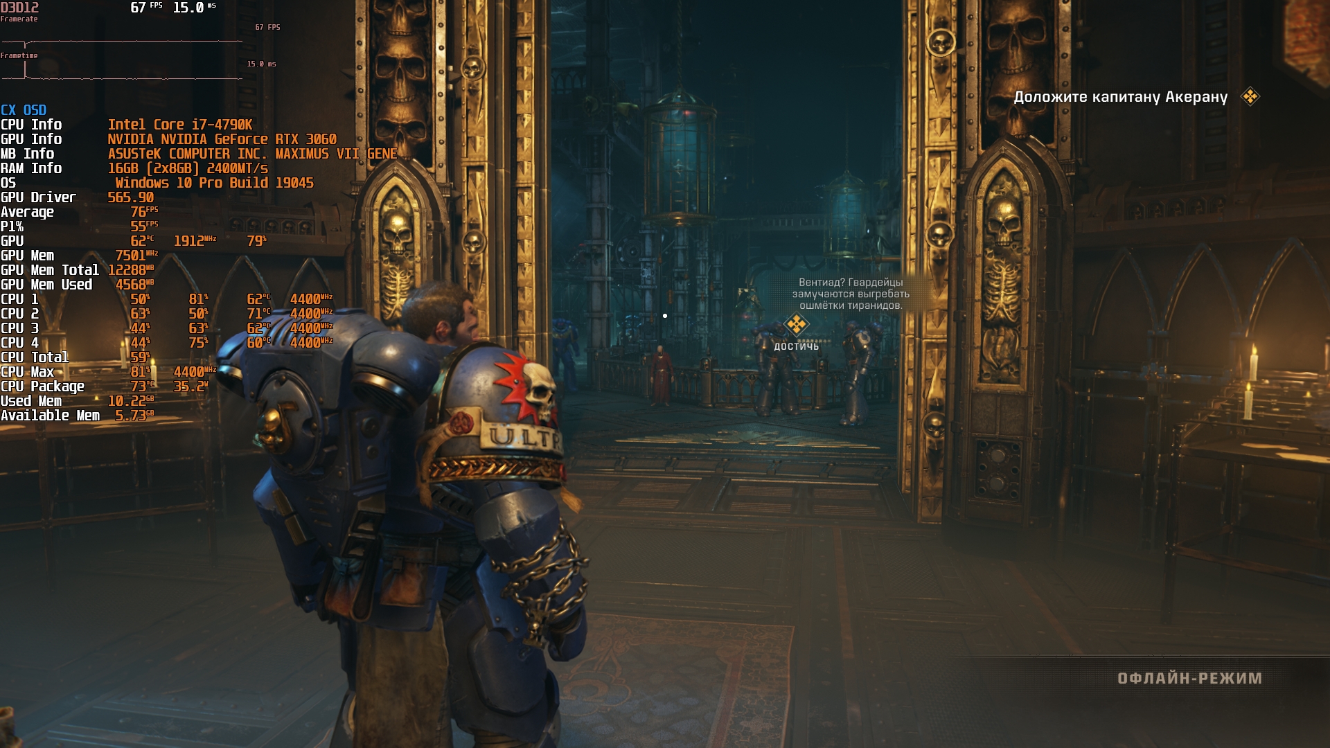 Вот смотри - выше есть скрин со 100% загрузкой 4790К при кешировании шейдеров - там он прогревается до 80-84С(кеширование занимает 6-10мин, в зависимости от игры). А вот под ОССТ/Прайм на протяжении 20мин - только до 71-74С. Стресс-тест(20 прогонов) FireStrike extreme - до 64-66С. Местами в GoWR/WH40K SM2 4790К прогревался до 71-75С - прямо как под ОССТ/Прайм95 (но таких мест там немного)