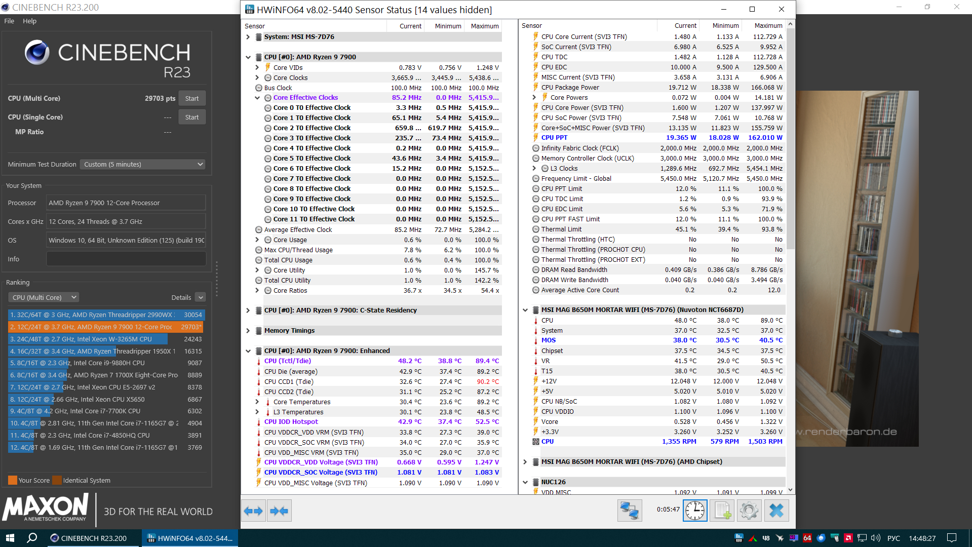 Ну фиг знает. Выше сделал скрин 30 сек многопотока cb23 на 5700g и там если смотреть максималки на ядро и CPU (Tctl/Tdie) все сходится. Надо на 7900 глянуть еще, но вроде на нем так же.