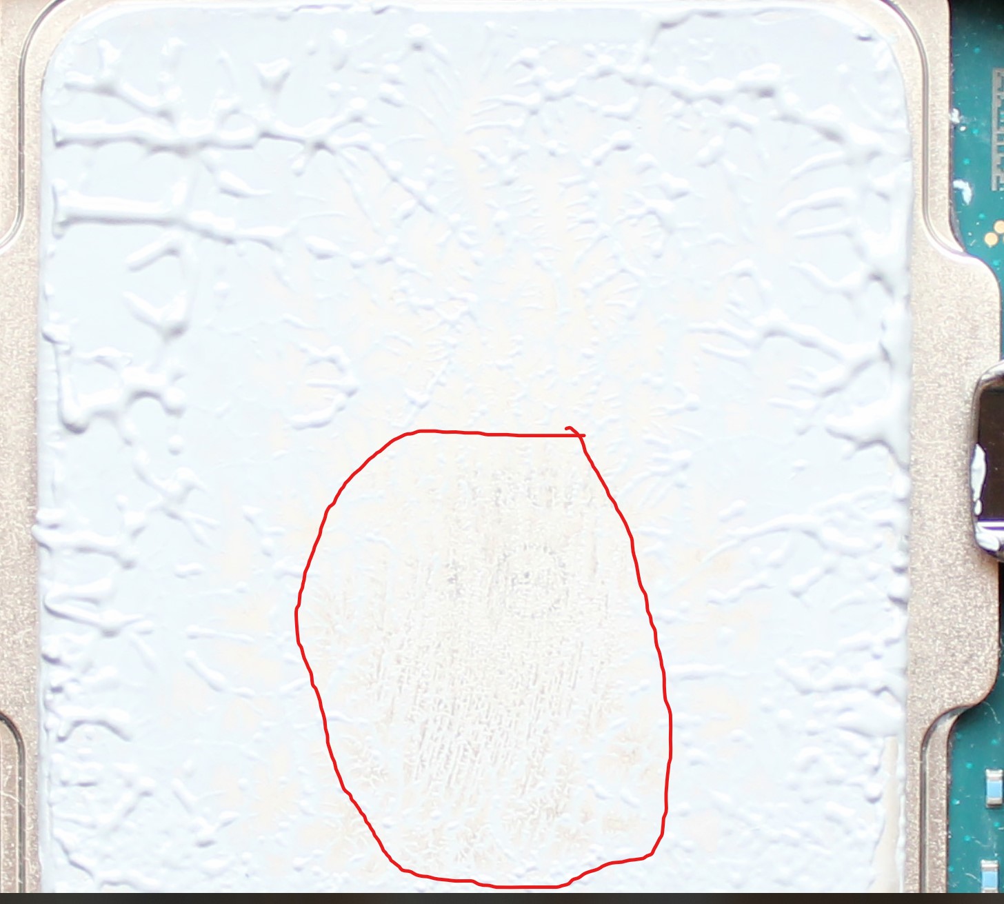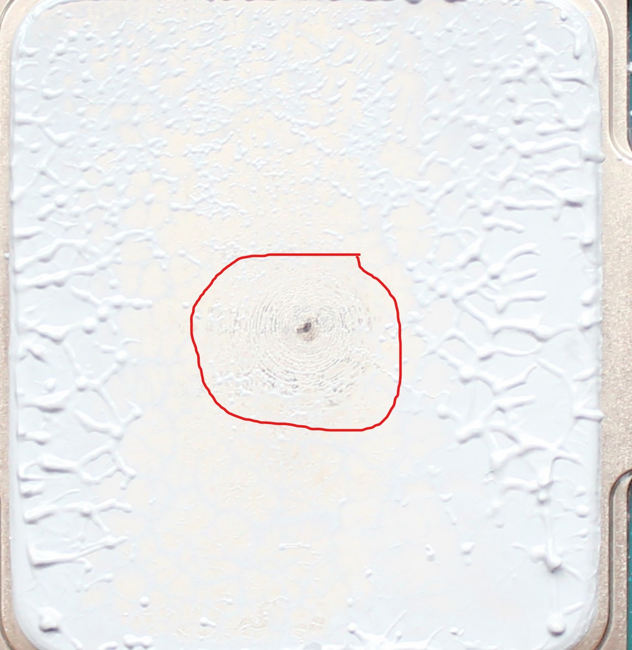 Мы видимо на разные фото смотрим... Вот пятно контакта нового кулера, вокруг него просто слегка раскатанная во время установки/снятия паста.