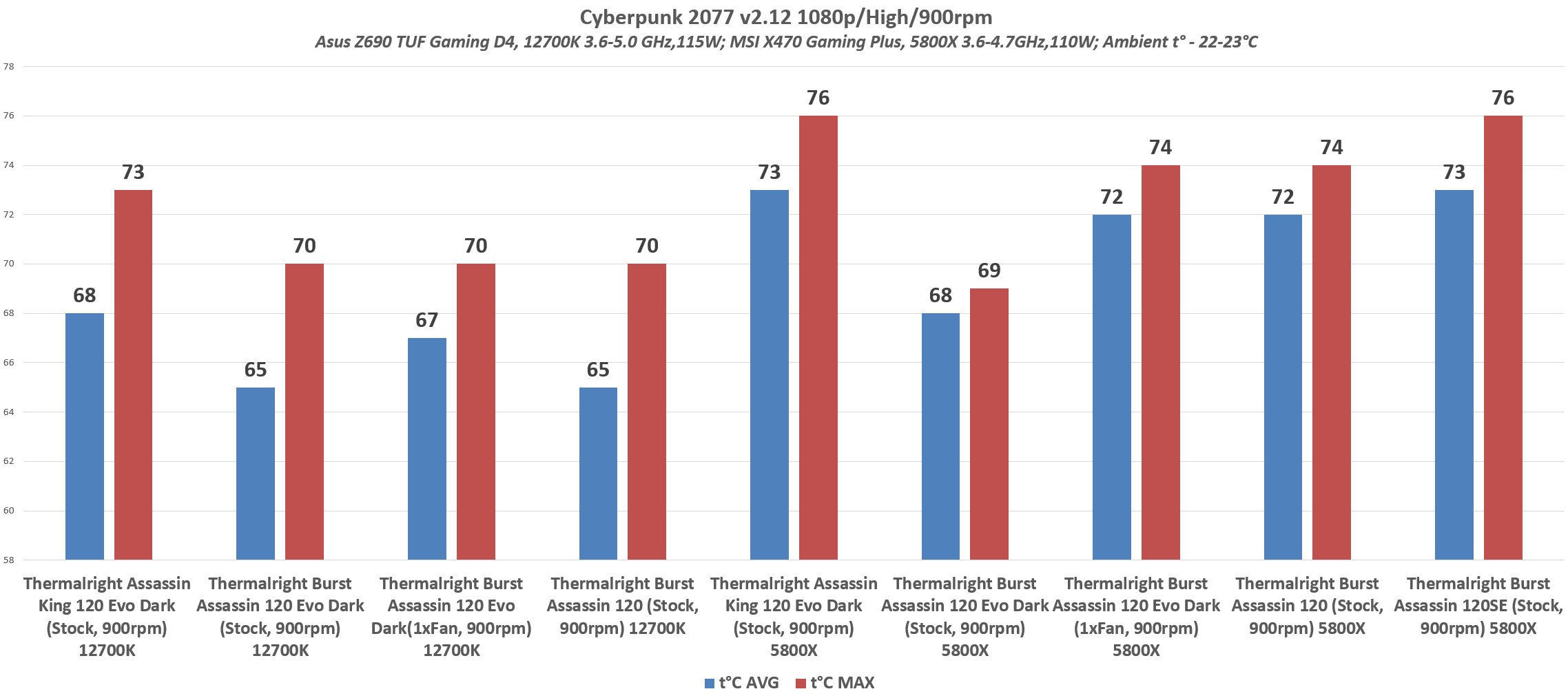 Не знаю, 5700g сток это 88Вт PPT и на нем все чувствуется отлично. У меня BA 120ED на 900об max настроен, а по темпе это как 1150-1200об с одним вентилем, та же история на 224xt. Как раз до +-1000об разница есть, а при 1500+об 2-2.5 градуса. Ну или на PCCooler-е такие вентили.
