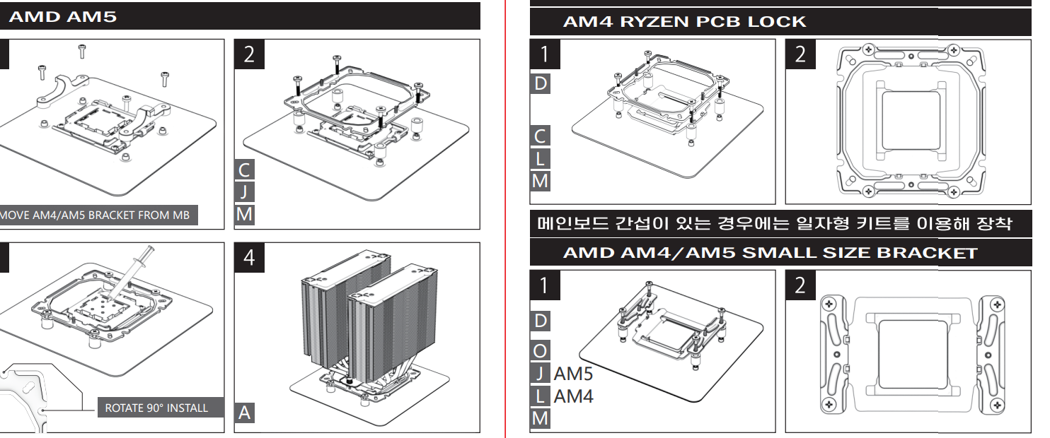 С кулером идет инструкция, в которой есть слова? А то в скачанной мной https://ultimake.co.kr/index.php?module ... 25435308f6 одни картинки. И на их основании я не могу сделать выводы аналогичные Вам. Одно только недоумение от того, что ам4 противопоставляется ам5 в части высоты втулок.