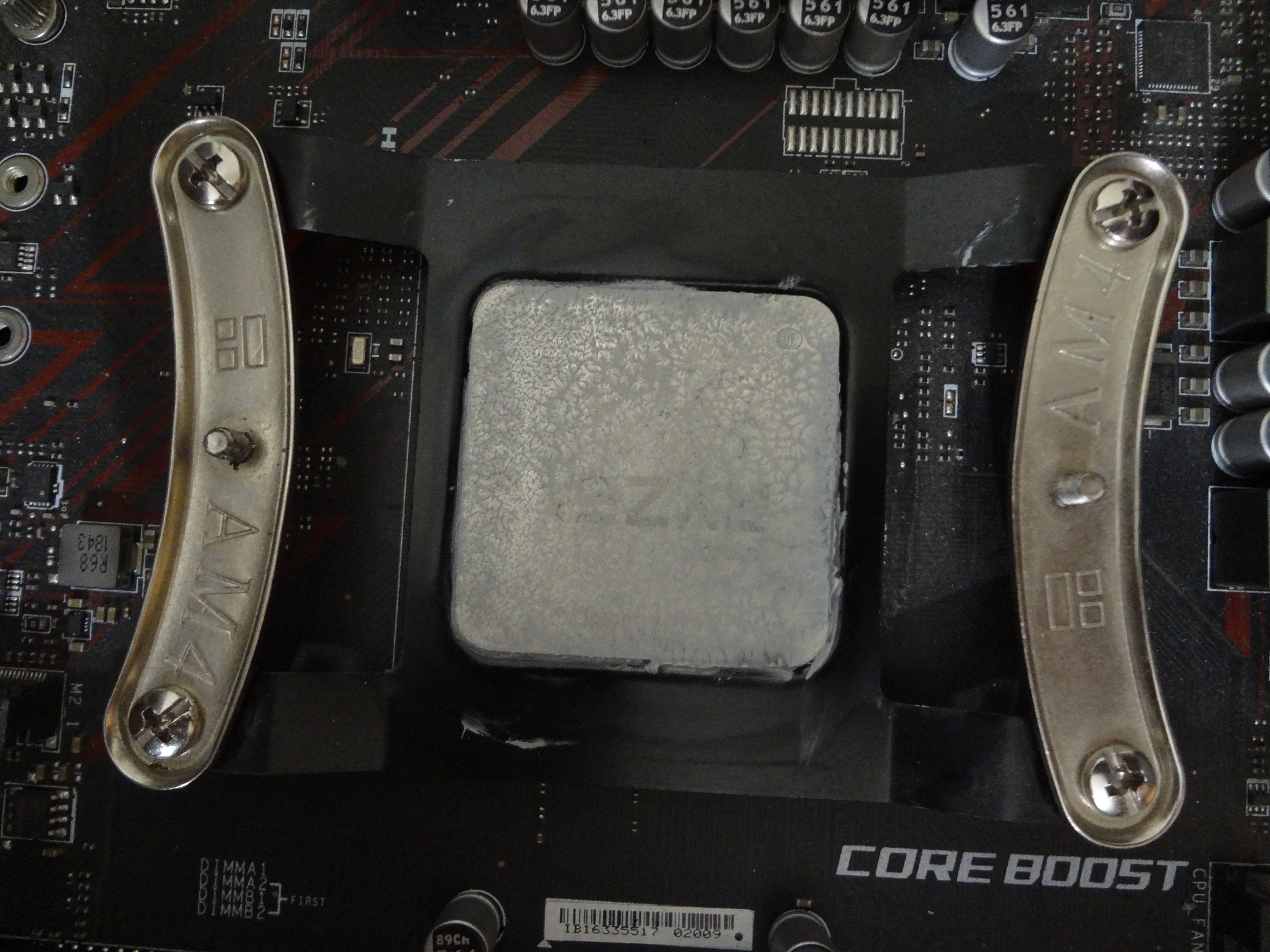 НЕ ИСПОЛЬЗУЙТЕBACKPLATE CAPПРИ УСТАНОВКЕ ТЕРМАЛРАЙТОПОДОБНЫХ КУЛЕРОВ С УНИВЕРСАЛЬНЫМ КРЕПЛЕНИЕМ либо внимательно осмотрите при его установке площадку конденсаторов сокета матплаты с обратной стороны