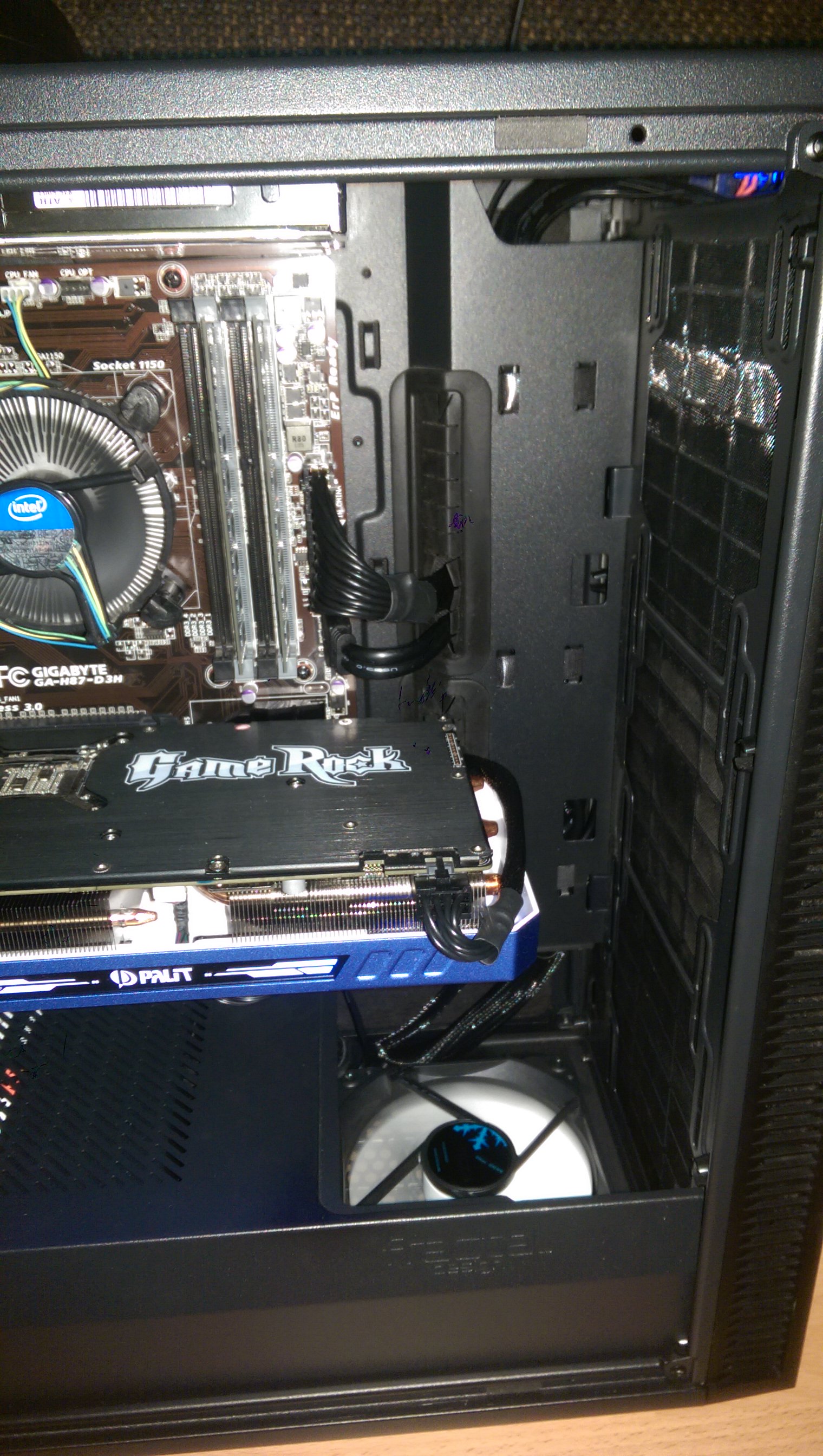 Как считаете лучше расположить вертушки в корпусе? Собираюсь докупить одну bequeit 140. Одна 120 сзади, и одна как видно по фото снизу. Но есть место спереди для 3 140 Так вот лучше как есть и ещё одну спереди 140 воткнуть или убрать снизу и обе на перед?