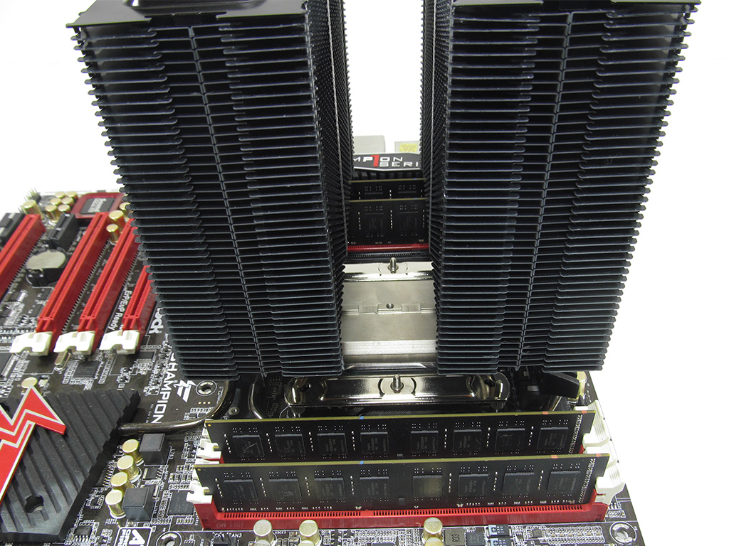https://overclockers.ru/lab/show/48984_ ... H-TC14PE#6 Цитата из обзора: "Я подвесил вертушки довольно низко – как раз так, чтобы они не выступали за габариты радиатора. В этом случае достигается очень небольшая высота всей конструкции – не более 165 мм, при измерении от поверхности текстолита." У меня есть 170 мм(запас в 10мм с хитростью), получается с высотой проблем нет. Что по поводу модулей ОЗУ?