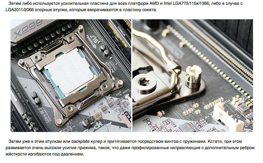 и у меня появилось ощещение, что я вчера не правильно установил кулер. Вот здесь пишется о какой-то усилительной пластине , но я не помню, что бы таковая была в комплекте, но такие то типа втулок были. Я де просто подставил с обратной стороны материки backplate и к нему сразу большими винтами с пружинами прикрутил кулер. Чем мне это грозит? Нужно переустановить? Если переустанавливать надо ли заново термопасту намазывать?