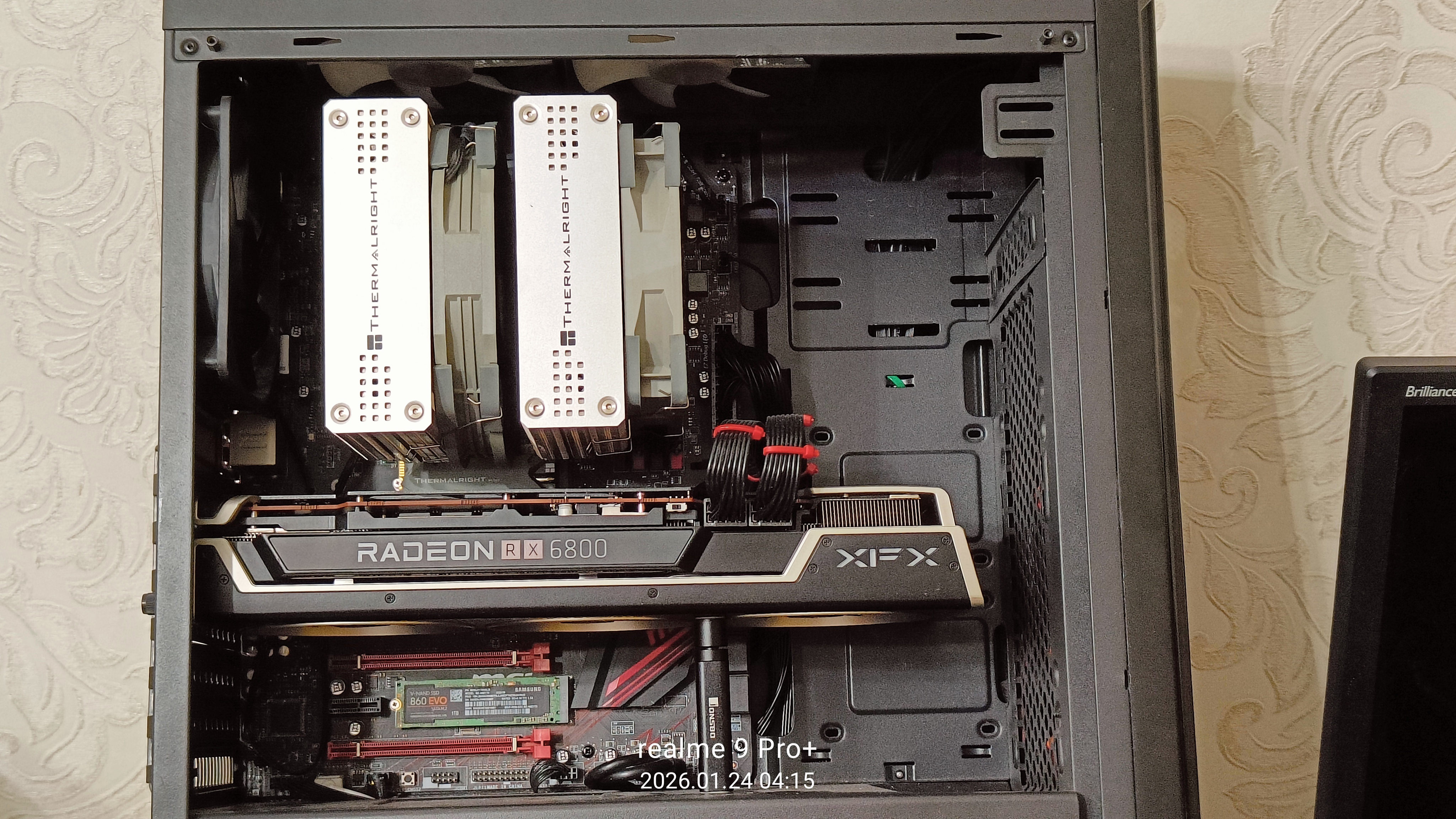 Готовлю стенды на АМ4 к продаже(все равно тестировать на АМД бессмысленно). Вот - сборка на 5800Х+32Гб+NVME 256Gb + SATA-3 1Tb(860 EVO). В ближайшее время после замеров добавлю на Барахолку. У корпуса указана МАХ высота кулера - 156мм, но как видим ФС140 Ген4(158мм) прекрасно вошел. Хотя 5800Х тот еще плазмоган - но в играх все тихо.