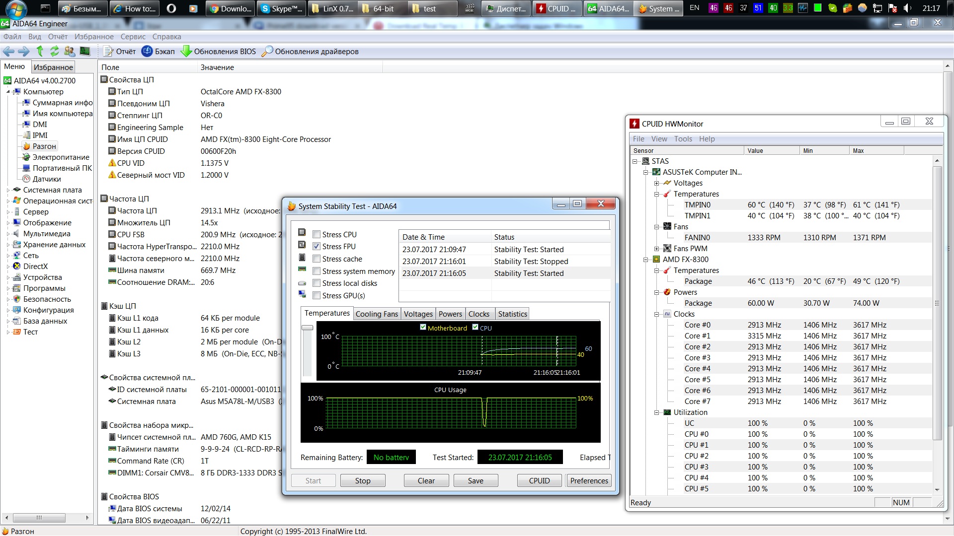 сейчас у меня FX8300 и zalman 9500 разгона пока что НЕ будет так как жалко слабенькую материнку на что сменить ? http://hotline.ua/computer-kulery-i-rad ... mmaxx-400/DeepCool GAMMAXX 400 770 грн http://hotline.ua/computer-kulery-i-rad ... _performa/ Zalman CNPS10X Performa 1100 грн http://hotline.ua/computer-kulery-i-rad ... rices/#1/0Thermalright True Spirit 140 Direct 1450грн грубо до $60 меньше лучше? но что бы было гарантированно и принципиально луше чем zalman 9500 , так как он уже стааареньки под устал немножко и шумноват на максимальных оборотах как бы хочеться что то новее в сторону с рук тоже смотрю но только при условии без проблемной замены на башне с рук вентилятора провел тест prime95 и отдельно Aida 64 по 5-7 минут 61 градус нормально вроде бы Залмана 9500 хватате или я не так грею ? запустил ОССТ таки процессор под нагрузкой занижает частоту нескольких ядер то ли материнка = скорей всего , то ли кулер