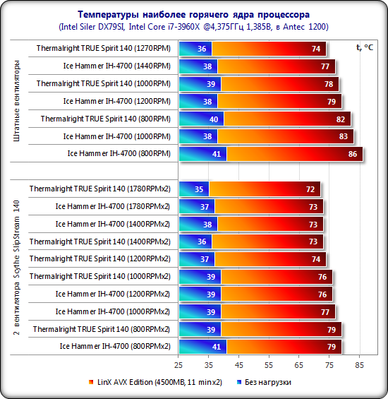 И если шумовой порог дело сугубо индивидуальное, то понижение температуры это уже очень существенный плюс, поскольку чем ниже температура, тем дольше процессор способен работать правильно и без сбоев.