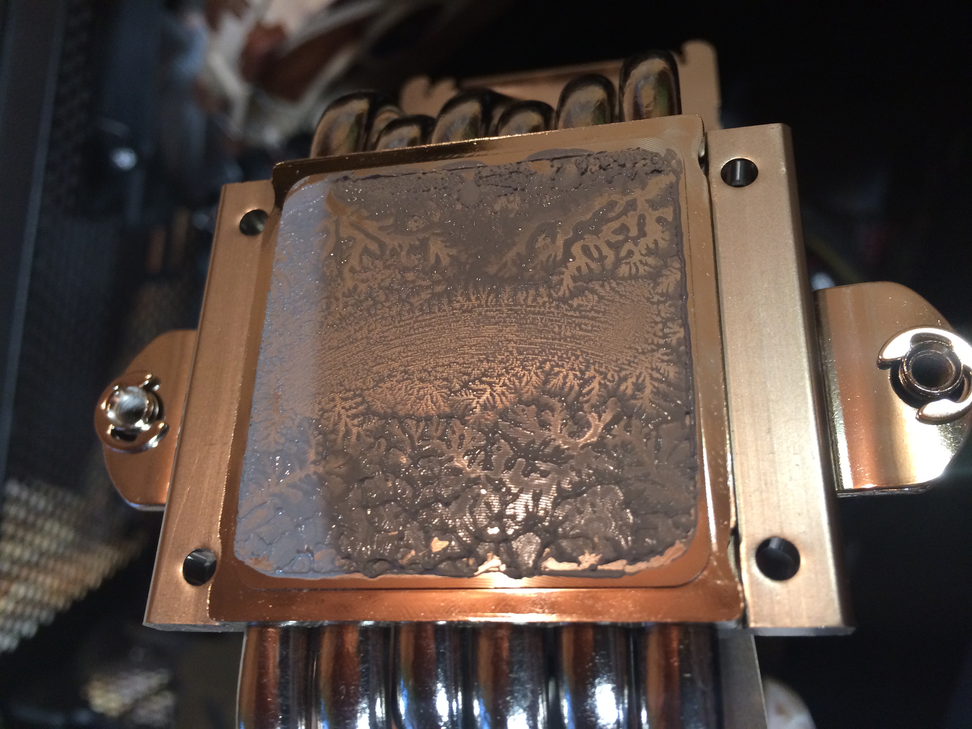 hungrybot А вы куда столько термопасты льете? У вас нормальный прижим только на 40% процессора и из них около 30-40% также на кристалл приходится, не удивительно что температуры хуже.