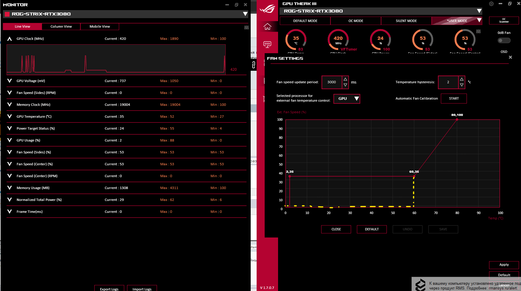 хз в какую тему писать со своим очень узконаправленным вопросом, знаю, что ответ вряд ли получу. у меня колхоз 3080 strix с корпусными вентиляторами на ней, подключены к external fan разъемам на карте (на стриксе есть 2 штуки). кривую настроил в gputweak III. так вот, до обновления платформы и переустановки винды вентиляторы проблем не вызывали и работали по кривой. но новой винде после каждого включения пк приходится вручную применять профиль каждый раз, автоматом почему-то не применяется. набор софта вроде такой же, настройки тоже вроде как. почему не применяется профиль не пойму