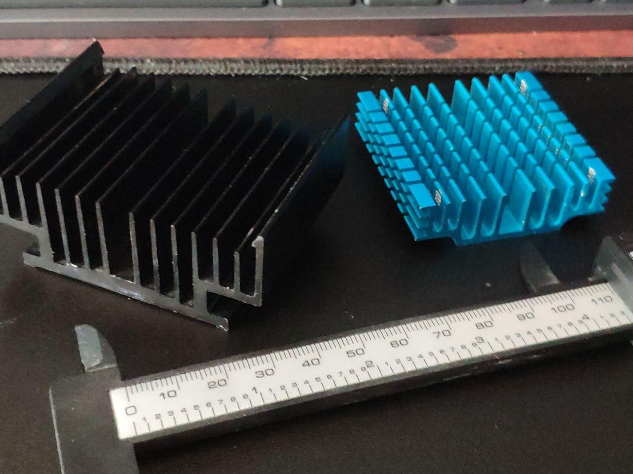 Teller голубого более чем. только закрепить его будет не очень просто. возможно имеет смысл сделать достаточно широкие (2-3мм) пропилы в боковых выступах до подошвы - как я понял она шириной около 20мм. тогда будет легко закрепить стяжкой или проволочным крепежом. для теплопередачи термопасты будет достаточно, только там вроде чуть разная толщина у чипа контроллера и чипа dram, вроде чип dram потолще, так что слой может потребоваться не самый тонкий. мягкие термопрокладки как раз и хороши тем что они нивелируют разную высоту чипов, а ещё некоторые из них очень клейкие и дополнительного крепежа для прижима не требуется (но требуется страховочный чтоб радиатор не отвалился). выделение тепла у 970 evo plus не такое большое, чтоб была заметная разница между типом термоинтерфейса.