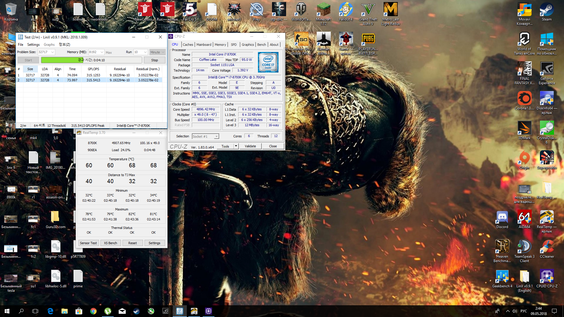 твой тест - некорректный и никаким образом не может быть принят к рассмотрению первое и самое важное - это абсолютно кукурузный разгон на 4700мгц под avx 8700к показывает примерно 400гфлопс при памяти 3600мгц