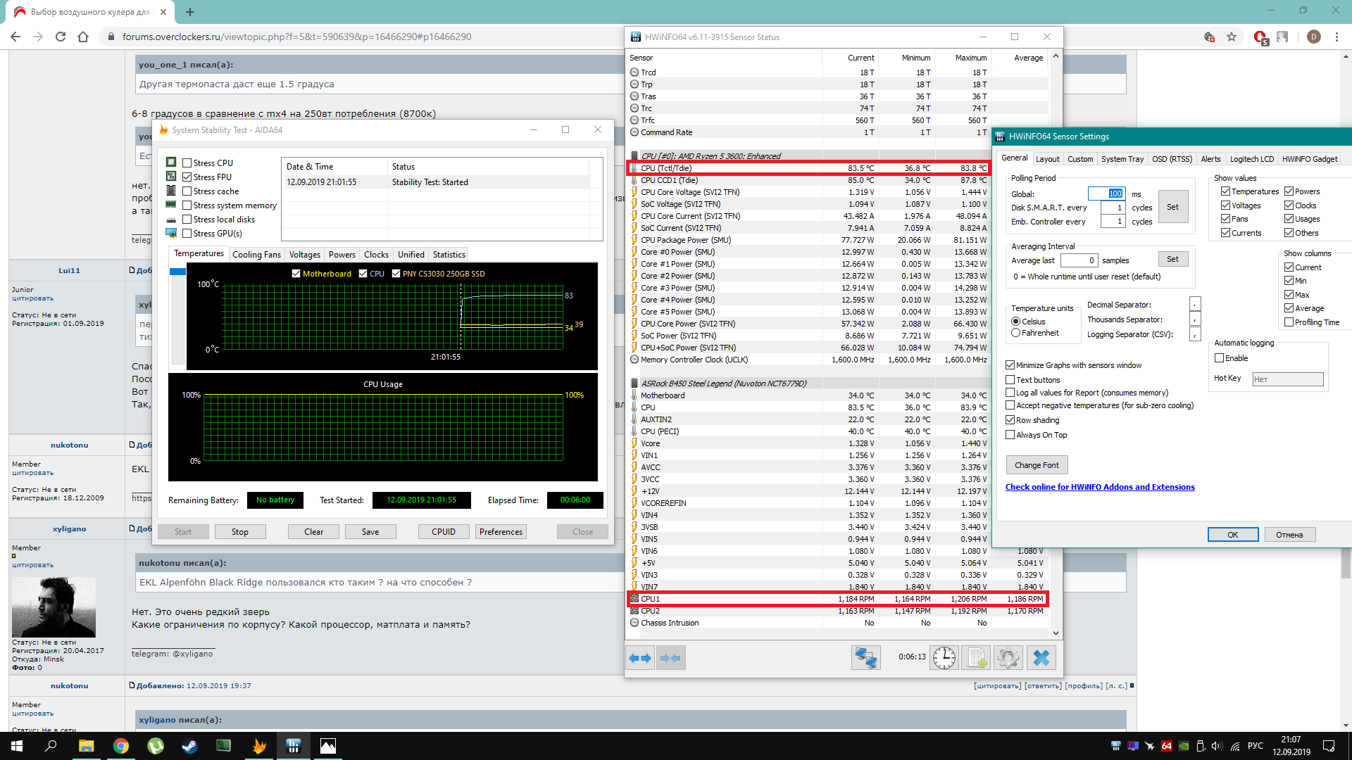 Что-то меня рекомендуемый тут Aardwolf Performa 10X при использовании с Ryzen 3600 совсем не впечатлил. Ожидал, что хотя бы не дойдет до 80 градусов, а в итоге опять за 80. Вентиль стоит Scythe Kaze Flex 120 PWM (SU1225FD12M-RHP) на максимальных 1200 оборотах. Выигрыш у предыдущего кулера Arctic Freezer 34 eSports DUO (комплектные вентили, 1200 оборотов) всего 1 градус в аиде. Нет, можно, конечно, на него повесить второй вентилятор, но общая стоимость превысит стоимость Arctic Freezer 34 eSports DUO, и я уверен, что второй вентилятор не даст ощутимого результата.