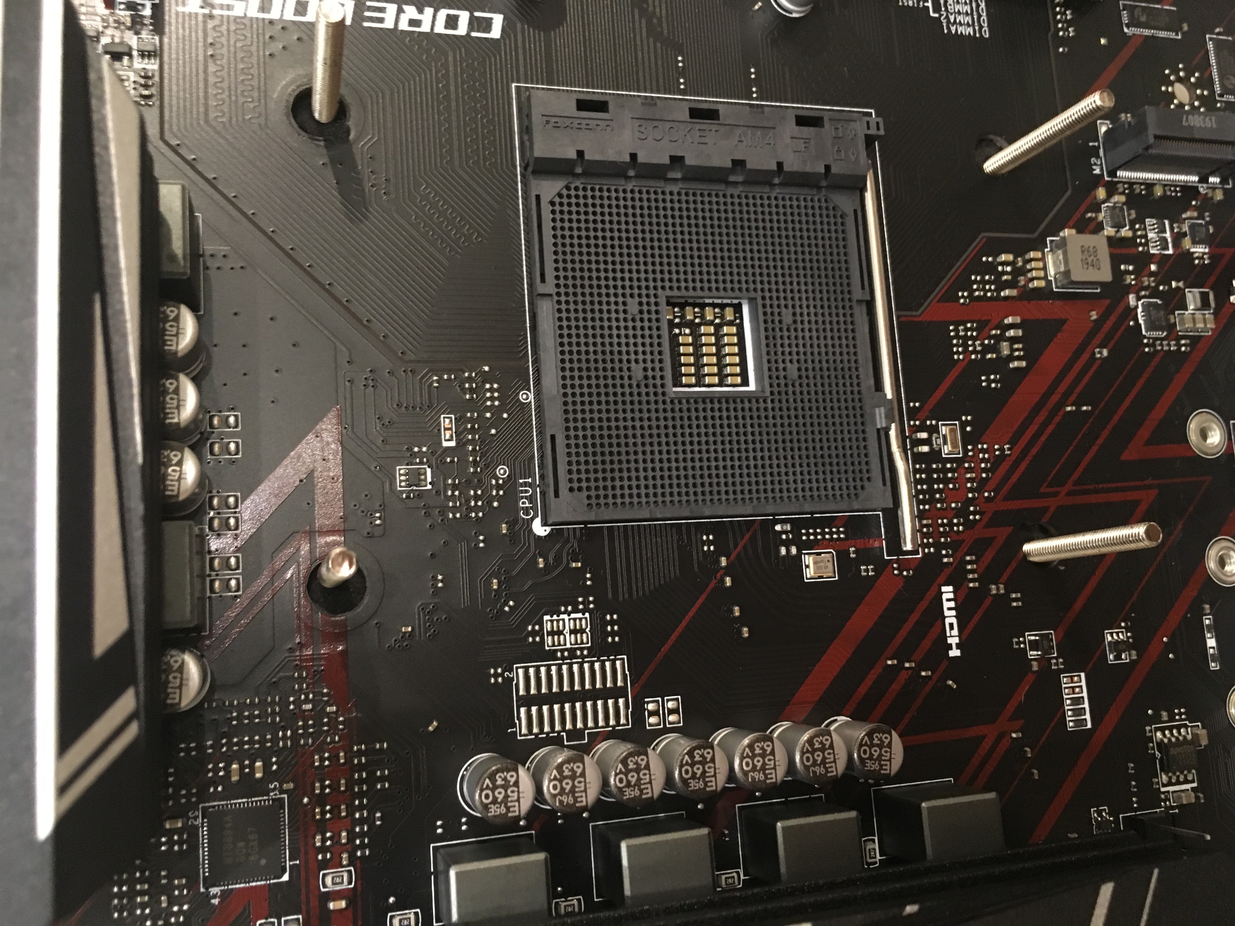 На плате посадочные места для крепления бэкплейта большого диаметра (фото 1) - мамкин родной стоит нормально (фото 2), а при установке кулерского бэкплейта его болты болтаются (фото 3).