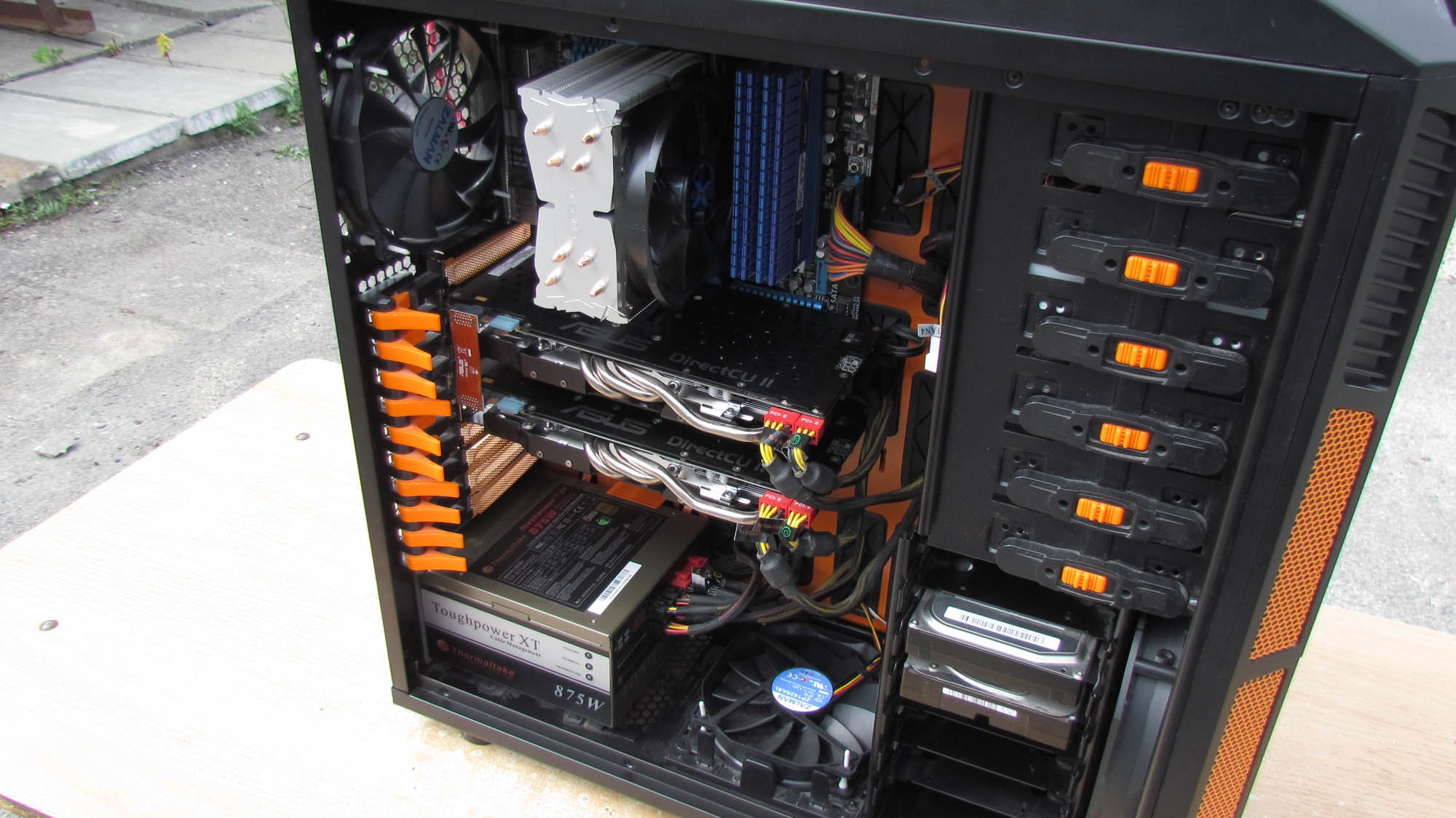 Добрый день. Есть вопрос по охлаждению asus 660x2. Корпус будет CM Storm Stryker. Проблема в том, что в корпусе нету места чтобы установить кулера сбоку.