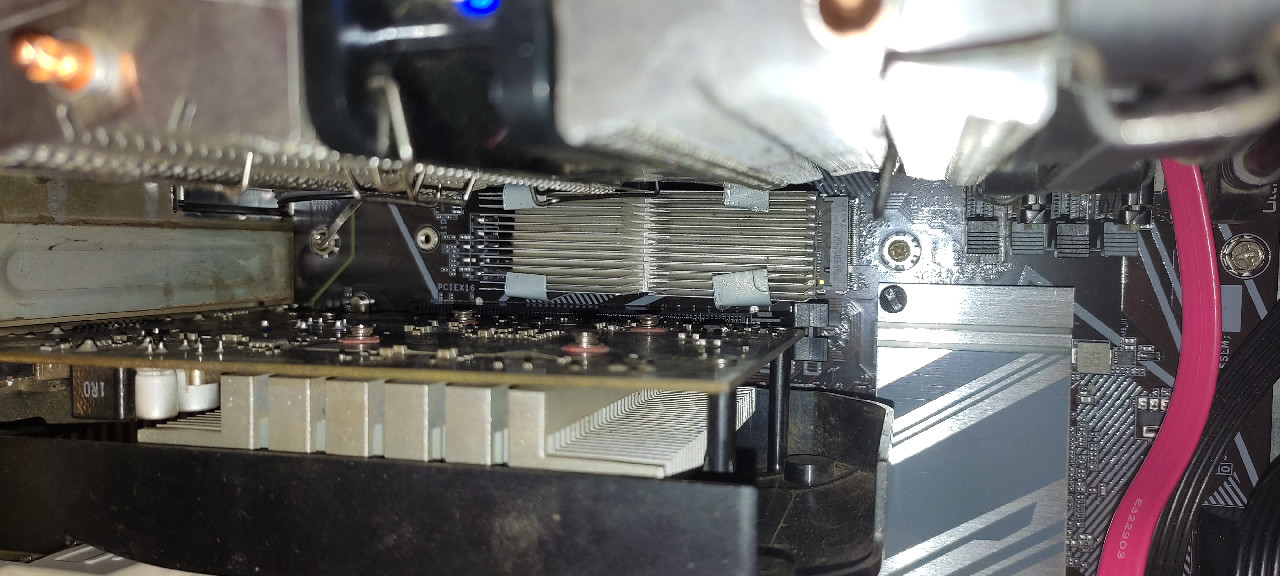 Приобрел 970 evo plus емкостью 1Тб с расчетом на будущее на довольно старую материнку (z77 чипсет). Зная нюансы с нагревом и вынужденным переходником в слот PCIe x16 выбрал пассивный радиатор охлаждения и адаптер. Собственно вопрос: смогу ли я установить радиатор с SSD диском в переходник? Радиатор https://aliexpress.ru/item/400062846781 ... 288b&tt=MG