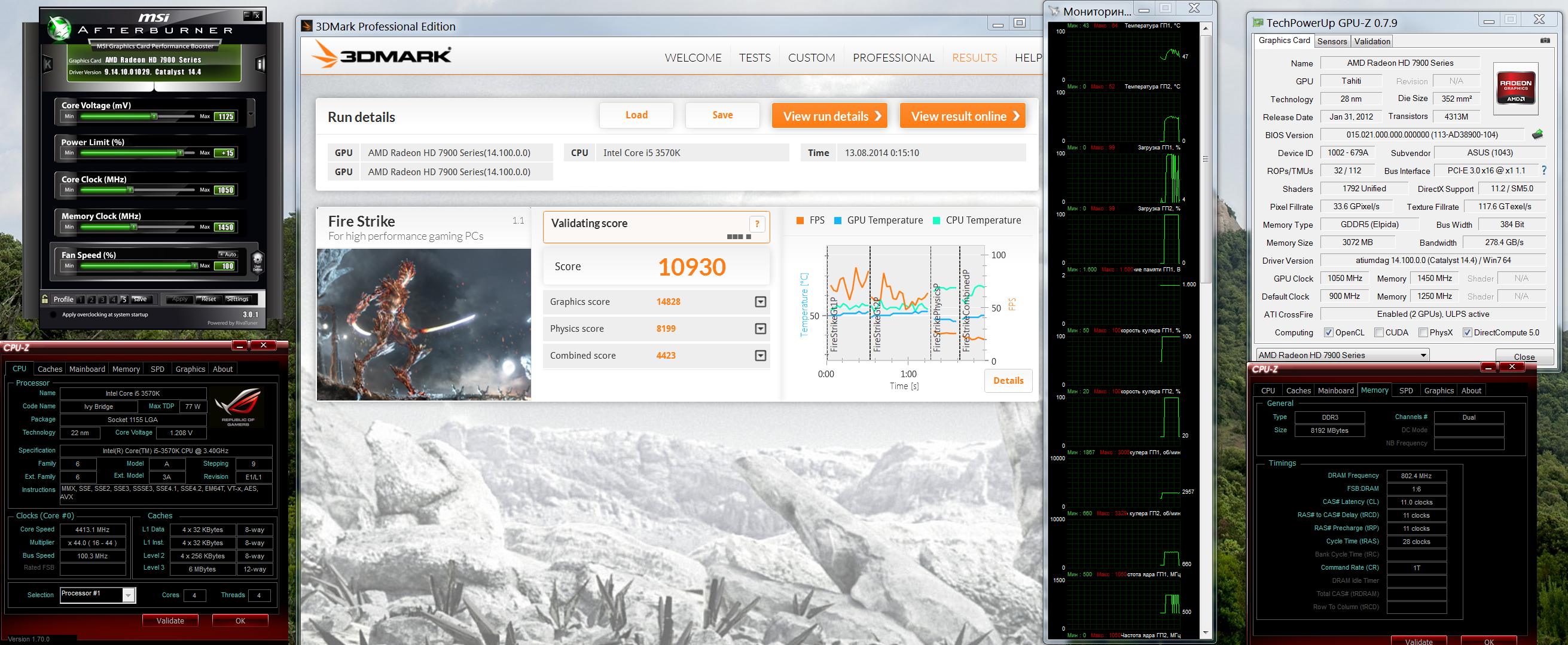 Поделюсь и я результатами. Без претензий на чистоту сборки, без претензий на 15% разгон в режиме 24/7, но с фактической работоспособностью в стоке и еще способностью бенчиться (см. скрин) )))) Конфиг охлаждается не 8ю, не 6ю, а 4мя вертушками: Сейчас кросс из 2х Асусов (см подпись). 30 минут игры в батлфилд 4 (см. скрин). обе карты поставил на 1000/1300 при 1V, кулеры на 50% - чтобы ровные величины у обеих. выше 73 верхняя не нагрелась (это 280ка двуслот с новой СО) HAF 912 отрабатывает тоже По вентиляции у меня 2х200 (крыша/фронт) на 12V и 120 сзади, 140 сбоку, 7V обе... 27 в комнате