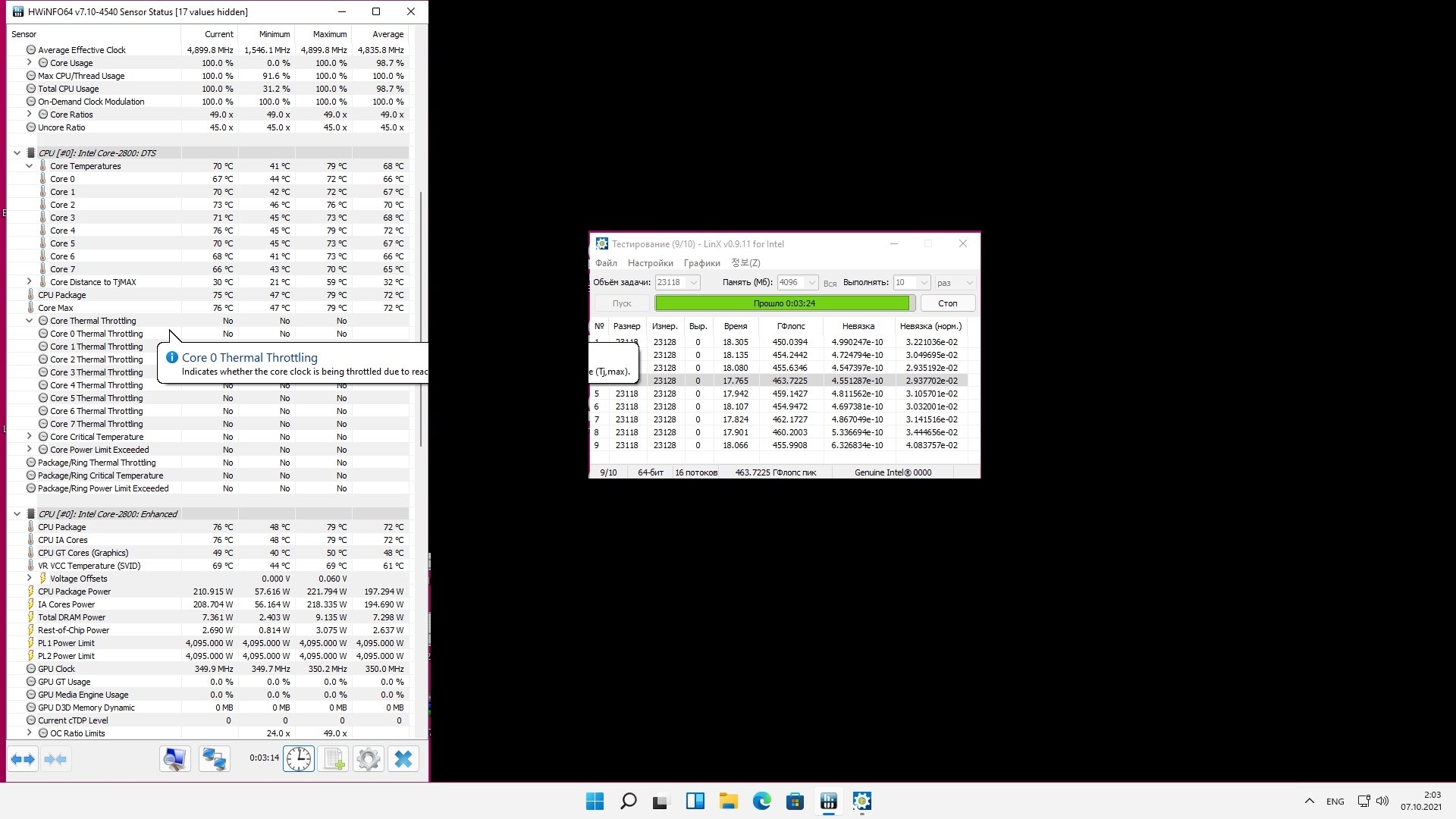 частота обновления у HWinfo=50ms=съедает флопсы и невязки даёт, но для темпы норм