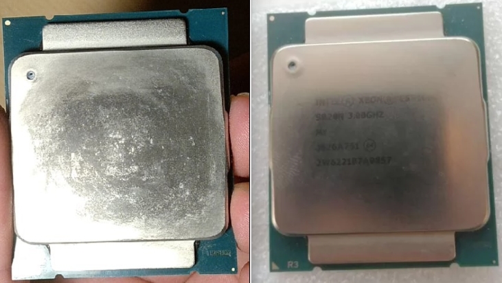 Я же не просто так упомянул этот момент. Кристалл Nvidia Ampere такой выпуклый, что ЖМ скатывается с него. Хорошо, что я стал лаком закрывать SIMD элементы. после второй утечки плюнул и вернулся к пасте. При этом с Nvidia Pascal все было отлично. Видимо, у Samsung чипы получаются выпуклыми, а у TSMC вогнутыми. Да и у Intel как теперь вижу, ровность тоже условная.