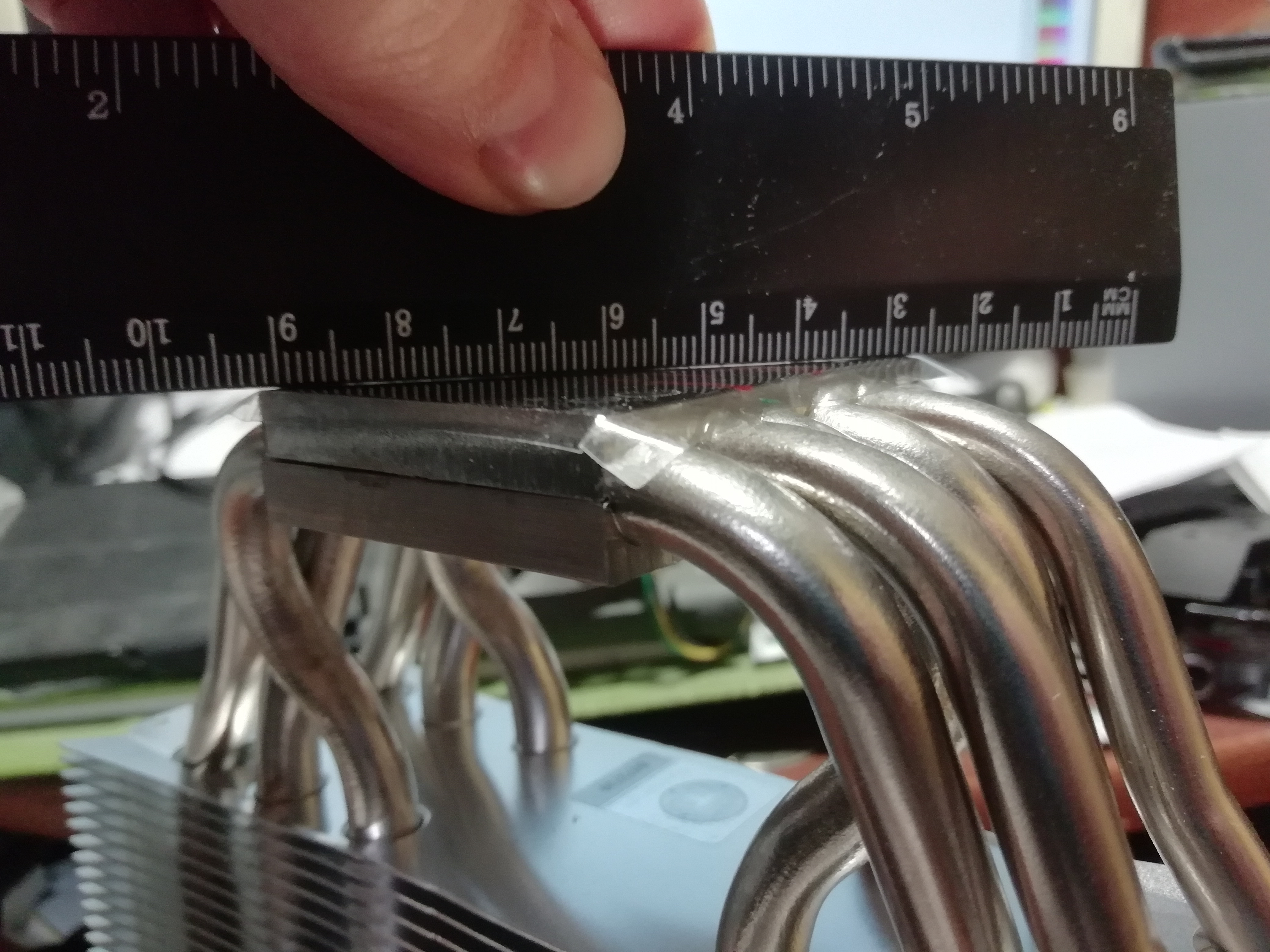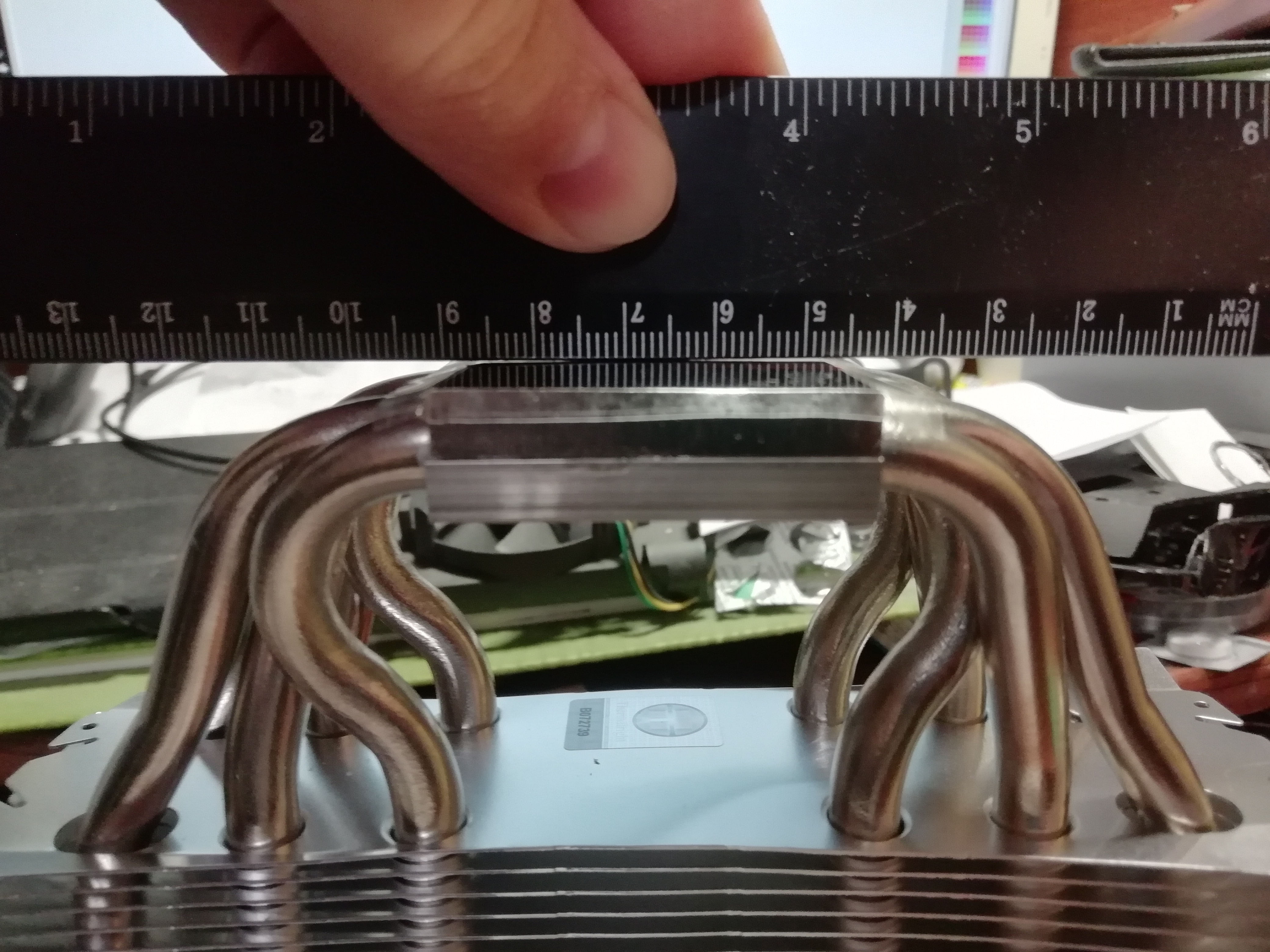 Ухи с отверстиями под сокет intel заходят за защитный кожух, под ним элементы пайки и ножек контактов. Завтра буду спиливать. Зазор но другом конце достигает примерно миллиметра. Сделал фото подошвы с измерением линейкой с разных сторон (диагональ и по центру), видно просвет монитора.
