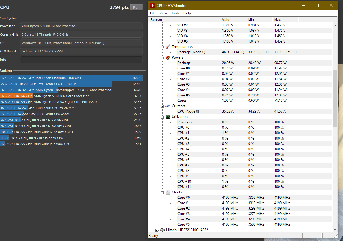 N1ghtwish , а сколько у тебя в Cinebench R20 температура? Нашел тест на Ryzen 5 3600X CPU @ 4.125MHz, там она держит 66 градусов. У 3600х и 3600 вроде как кристаллы одинаково расположены.