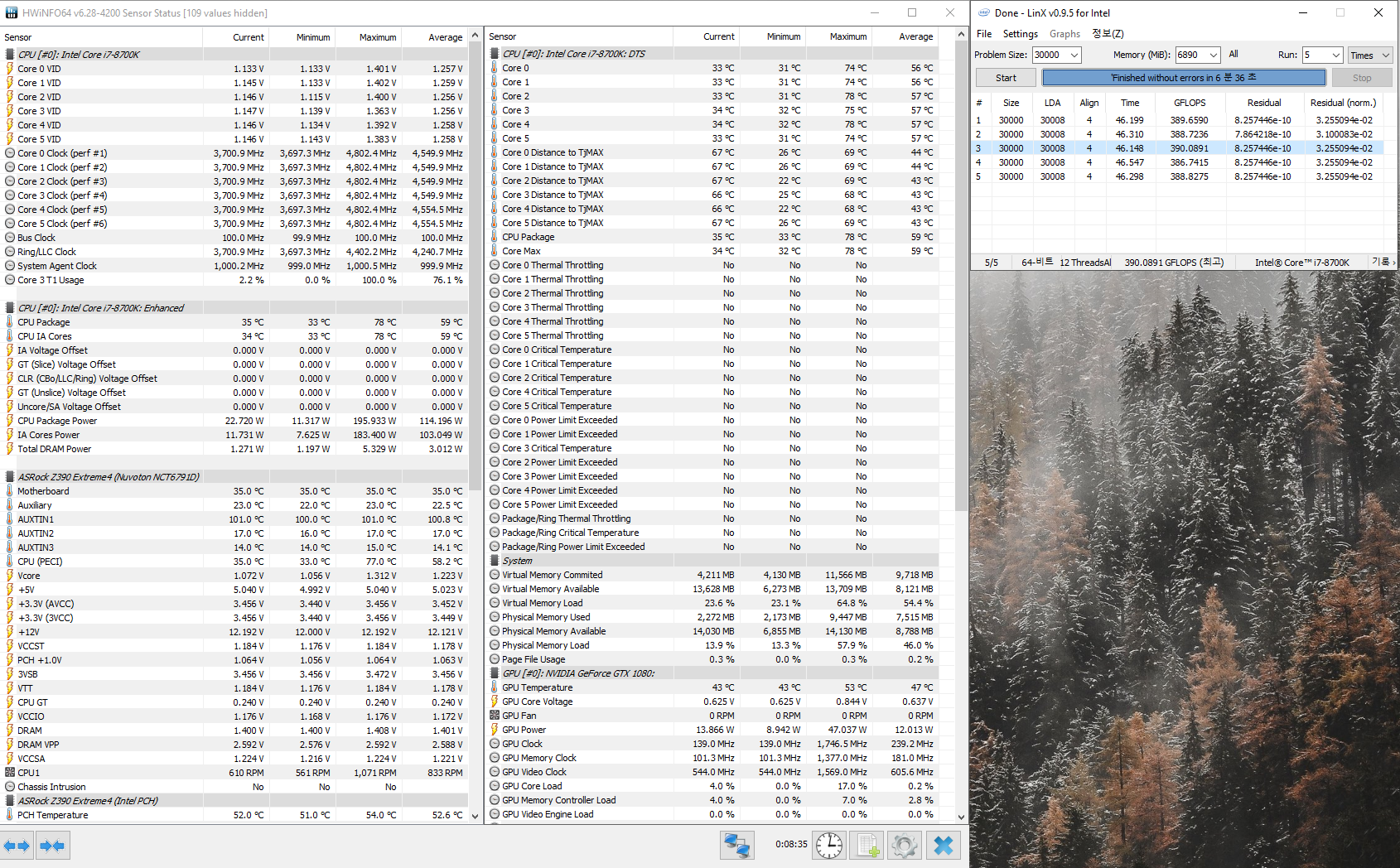 HS не снимался 8700k@4.6/~172W mem 3733c16 и ужатые сабы
