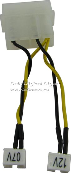 http://www.3dnews.ru/_imgdata/img/2008/10/29/100893.jpg Лежал какой-то левый, видимо только, на 7V (второго ответвления попросту нет). Из-за этого по видимому работает только 1 вентилятор. >.<