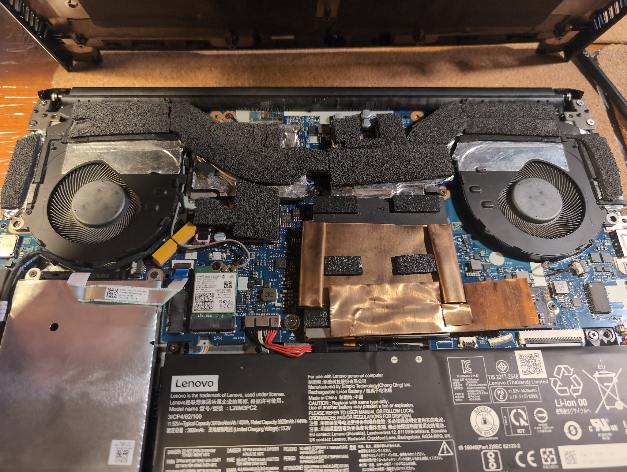 Также решил поделиться фото охлаждения процессора и оперативной памяти lenovo gaming 3, после такого тротлинг уменьшился с 30% до 15%, так как тепло не рассивалось внутри корпуса, а выдувалось кулерами