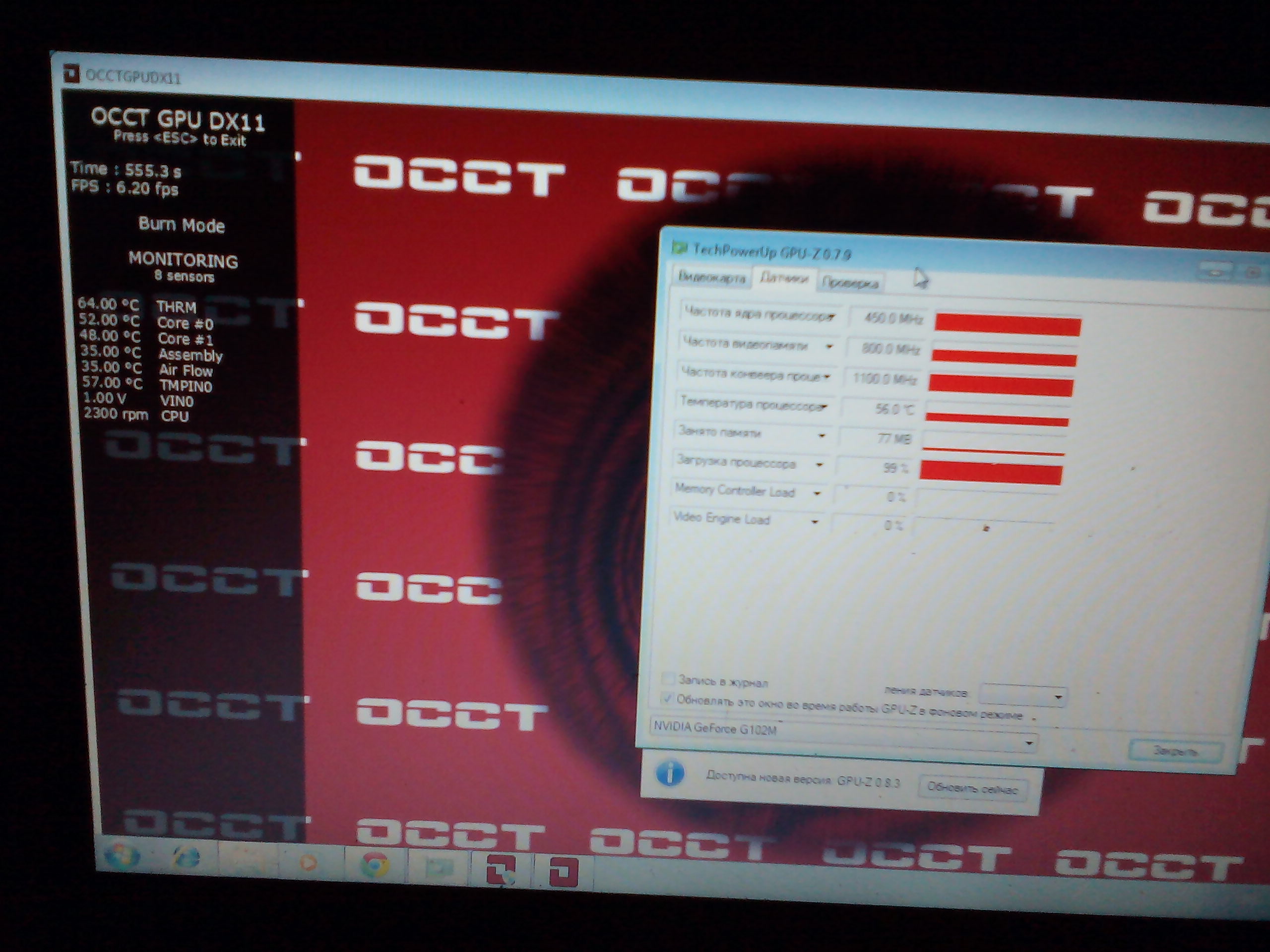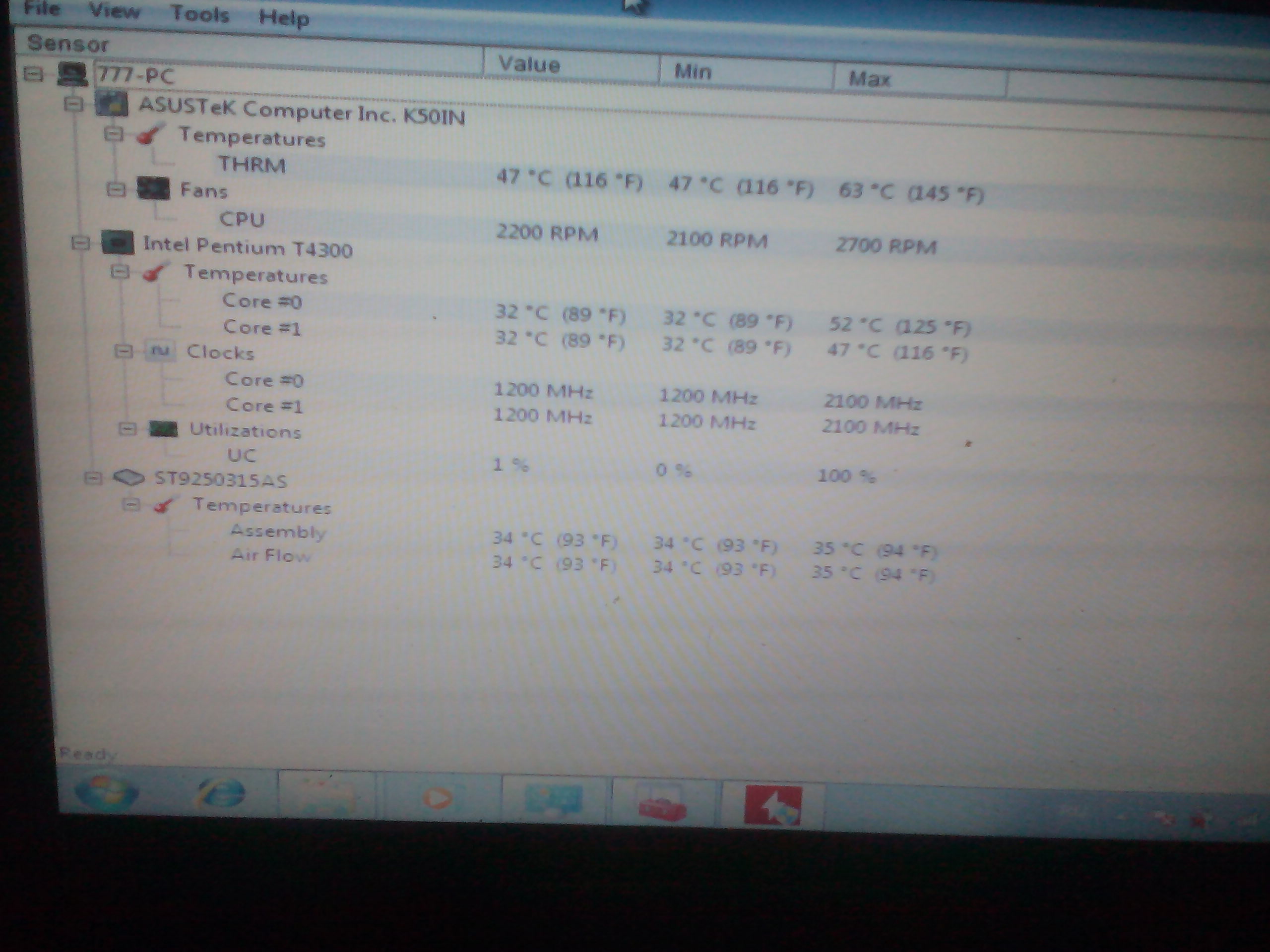 Сегодня попал в руки Asus K50 IN. Проблема была в том что перегревается и выключается, разобрал обнаружил что система охлаждения сильно забита пылью, термопаста пересохла и радиаторы прикипели к самому процу и видяхе, все почистил, термопасту нанес Artic COOL MX 4,силиконом жидким смазал ось самого кулера, но как обнаружилось, система охлаждения не соцельная, получается радиатор видеочипа не плотно прилегает к самой трубке, было принято решение чтобы уменьшить зазор поставить туда медную пластину и смазать ее термопастой с обеих сторон, зазор ушел, теперь тестирую или лучше этот зазор заменить на гибкую термопрокладку. Ниже приведены фото всех тестов. В простое видяха держится на 47 градусах, при комнатной которая превышает 26 градусов, при нагрузке с использованием теста OCCT температура держится в пределах 57-58 градусов, только датчик THRM показывает 68 градусов.