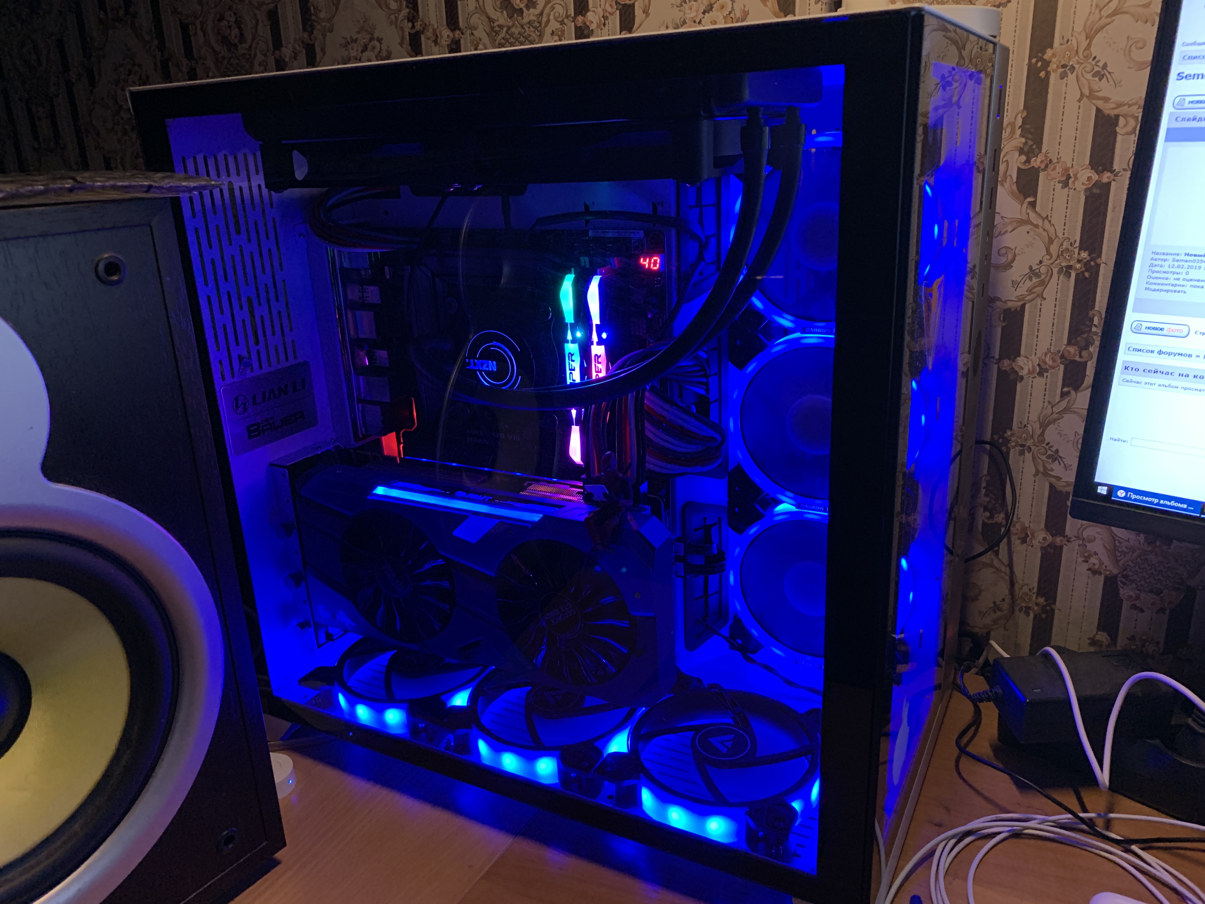 TOTALNOGEBAT, Tork, iceinmyeyes, хочу поделиться интересным наблюдением. Как видно по фото, карта у меня установлена через райзер. На выходных переставил нижние вентиляторы так, чтобы они высасывали воздух из корпуса, остальные не трогал, получается следующее: нижние выдувают, боковые задувают, верхние выдувают. Так вот, к сути, выставил на карте повер лимит на 140% и сел поиграть, карточка после 15 минут прогрелась до 75 градусов при оборотах собственных вентиляторов 59%, а корпусных нижних 1300 об/мин и что я заметил: нет разницы между тем выдувают вентиляторы снизу воздух или нет, как было на карте 75 градусов при 59% оборотов, так и оставалось, при этом частота все так же держалась на уровне 1911 МГц, с редкими падениями температуры ГПУ до 74 градусов, что можно списать на погрешность. P.S.0 Так же нет толку если вентиляторы задувают воздух снизу корпуса, проверял. P.S.1 Выдувают ли воздух вентили касалось только температуры процессора, которая колебалась от 55 до 60 градусов с выключенными нижними карлсонами.