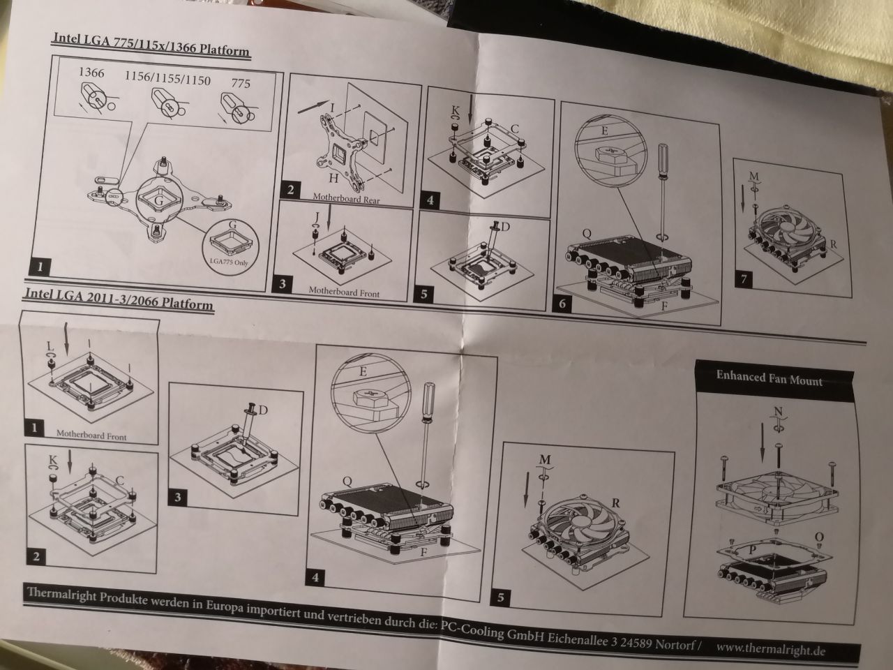 У меня процессор i5 10400 (LGA1200) и материнская плата MSI MPG B560I GAMING EDGE WIFI, а в инструкции к кулеру Thermalright AXP-100-Full Copper показана сборка для LGA 775/115x/1366 и LGA 2011-3/2066. Я не понимаю, в какие отверстия шурупы прикручивать в итоге. На какие обозначения мне смотреть, чтобы это железное основание прикрутить к материнке? Фото инструкции приложил.