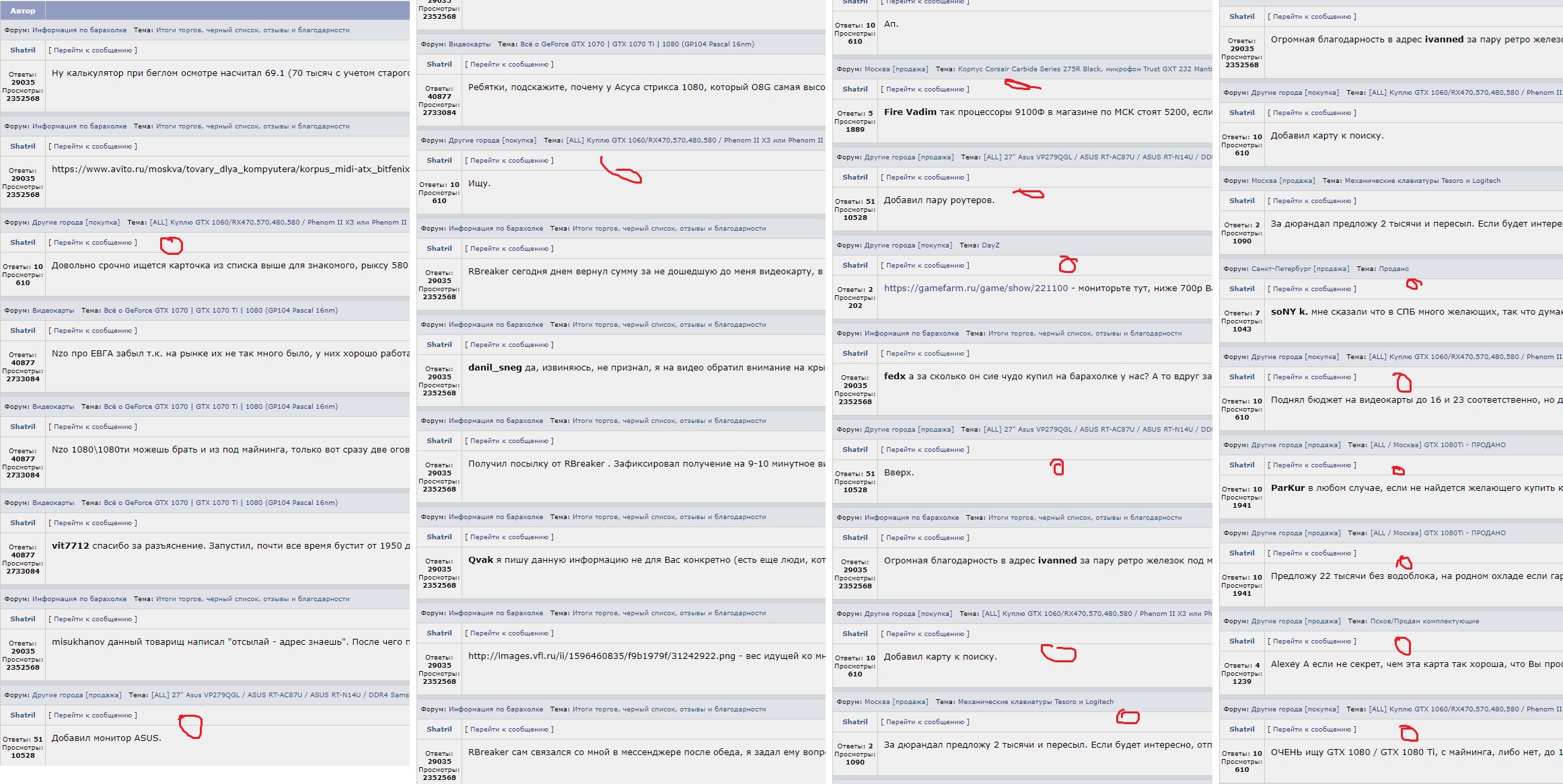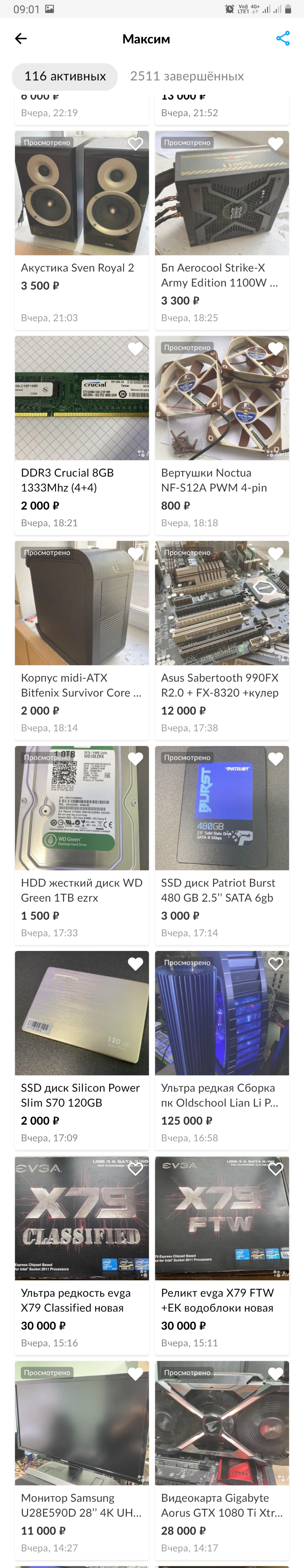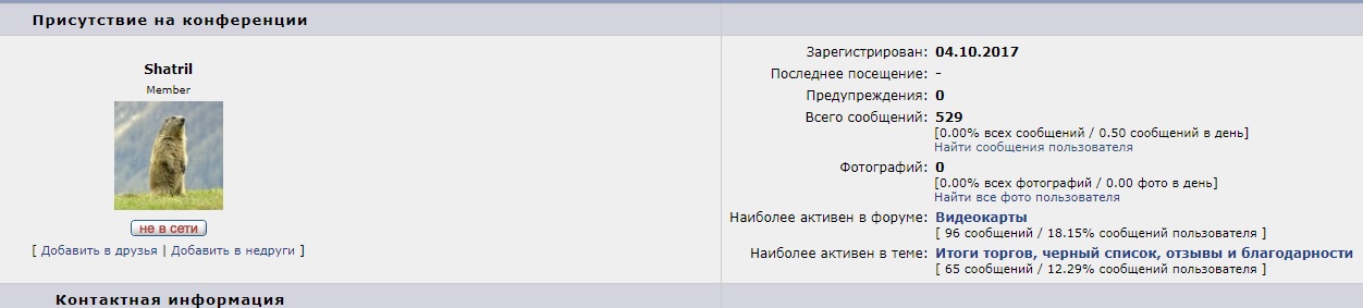 Забавно смотреть, как барыги топят своих конкурентов... Если взглянуть в профиль пользователя Shatril, то можно увидеть что этот барыга достопочтенный наиболее активен в этой теме, а бОльшая часть его сообщений - в барахолке --- Я уж расследование проводить не буду, но администрация явно не мониторит его повышенный интерес к железу. тут выше уже были ссылки на его покупки. Ну и опять-таки, явным доказательством его барыжеских действий является его последняя сделка, в которой его кинули - куда столько шлака? На апдейт его профильного ПК двумя процами и материнской платой? или помогает "бедным и несчастным"?