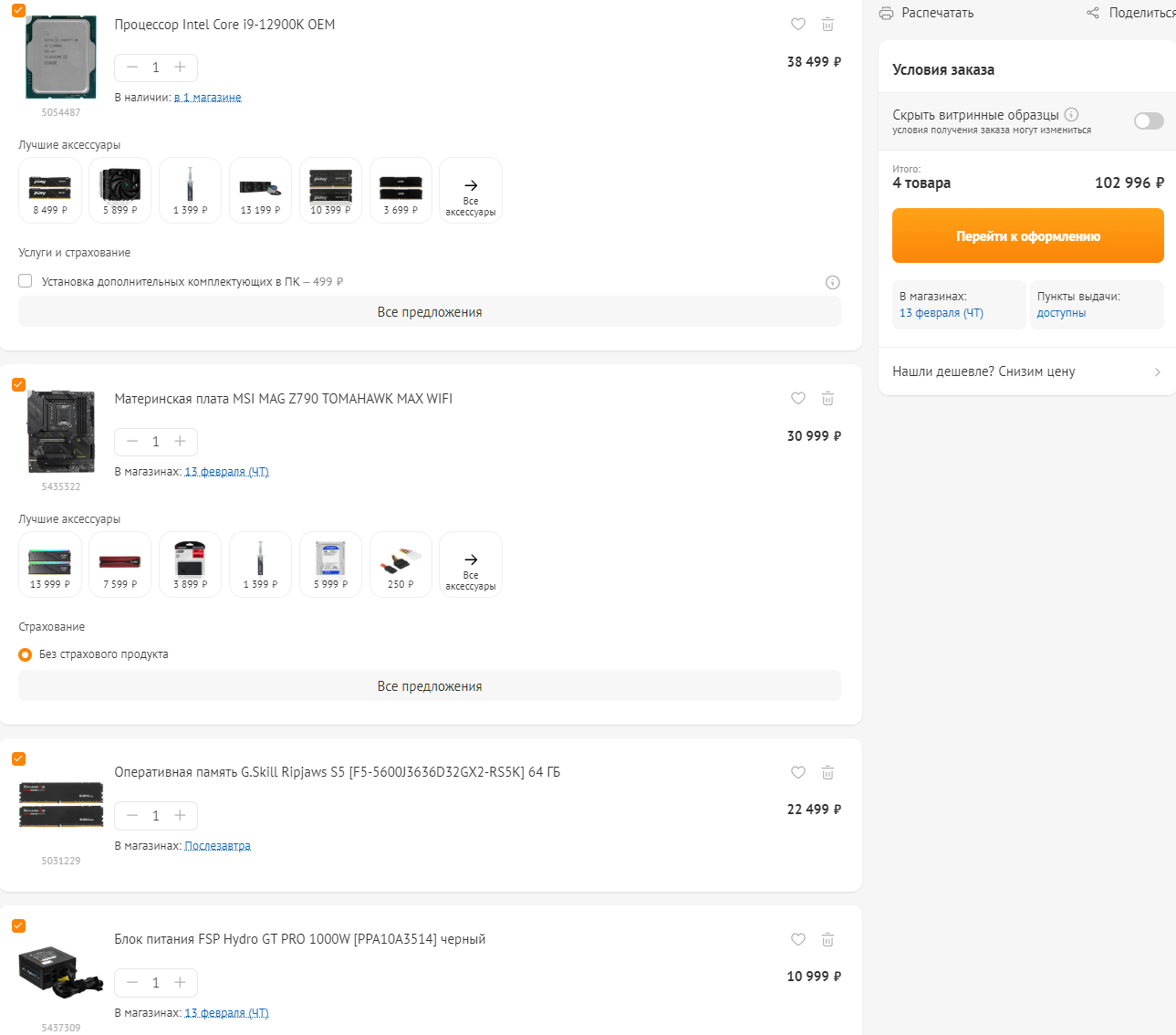 А почему именно 12900К? Он же горячий ппц, под него и водянку надо ставить еще.. Помимо прочего еще и частота поддерживаемой памяти всего 4800.. когда у ддр5 есть возможности куда шире. Почему не красные? или не 13 14 серия? А по поводу цен если смотреть в той же мск в магазе что я скинул там +- укладываемся в бюджет.