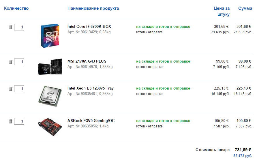 Плюс хотелось бы купить в сборе, но в принципе не мешает закупить все по частям, а потом отдать на сборку.