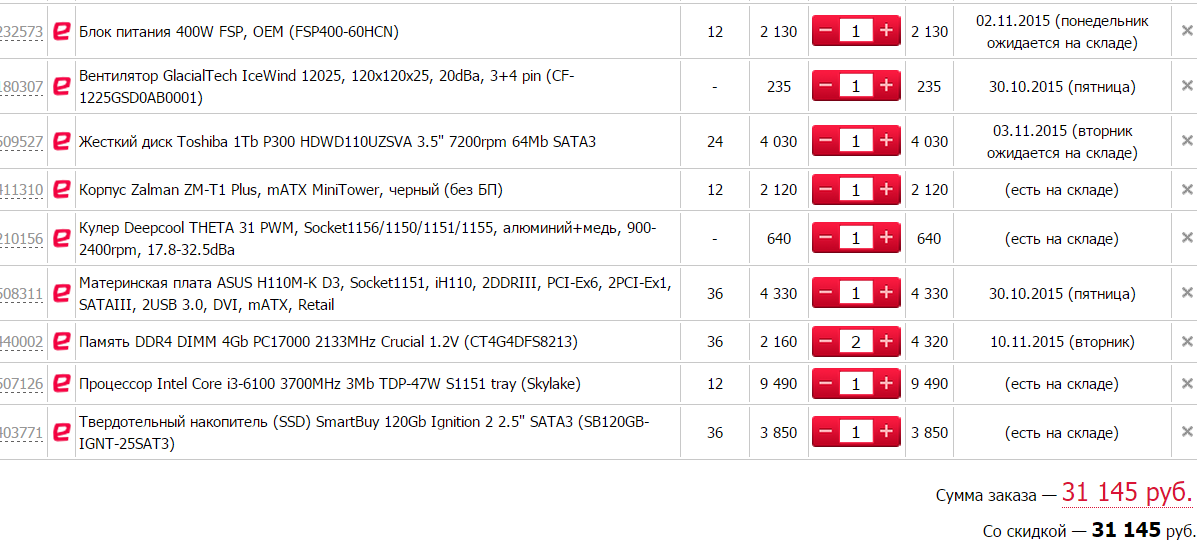 - а за 23 тыс руб попросил накидать сборку из http://www.computeruniverse.ru/ на i3-6100 и 250 gb ssd. И еще вариант на amd 860k тоже просил