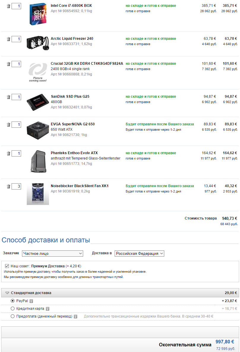 материнку и проц 100% в россии брать буду, так как не хочу связываться с возможной гарантией 6800k как по мне не стоит переплаты. а 5820k BOX в регарде стоит почти как ОЕМ версия, а то и дешевле иногда СЖО я 100% брать не буду корпус(будет стоять под столом) я долго выбирал, у меня к нему были определенные требования: