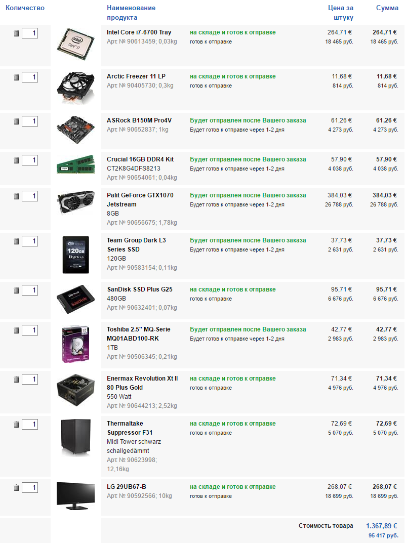 Учел все ваши советы и собрал вот такую корзину. Все друг к другу подходит? Что-то еще понадобится для сборки? Оперативка с другого магазина Kingston DDR4 8Gb 2133 MHz pc-17000 HyperX Savage (HX421C13SB/8)
