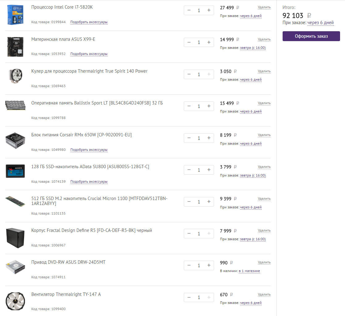 Пожалуйста посоветуйте годные детали ( начиная с пункта 5 и до 9) . Бюджет на весь комп до 100000 руб без видеокарты! Разгон планируеться, но не экстремальный . Компьютер нужен для игр в первую очередь. Заранее благодарен . Если можно то ссылки оставляйте на Юлмарт, Днс или Ситилинк в городе Казани