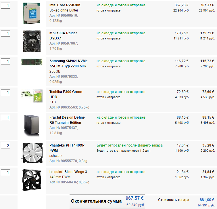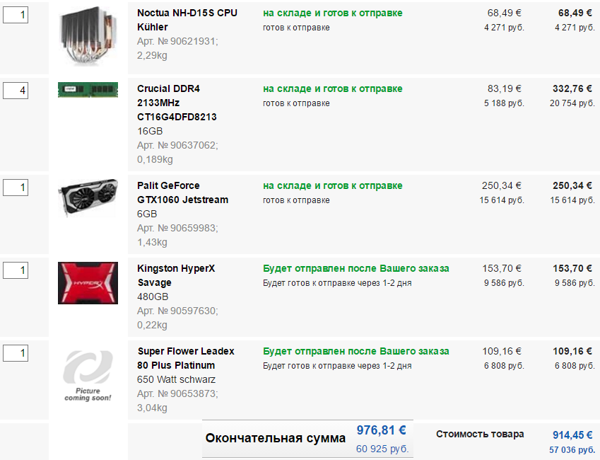 SSD Заменил на самсунг с меньшей емкостью, но более быстрый (В будущем, если вдруг не будет хватать емкости, в чем я сомневаюсь, заменю на другой) Матринку взял на Z270 Гигабайт (Тут скорее по религиозным соображениям) Кулер взял схожий, так как того нет в наличии.