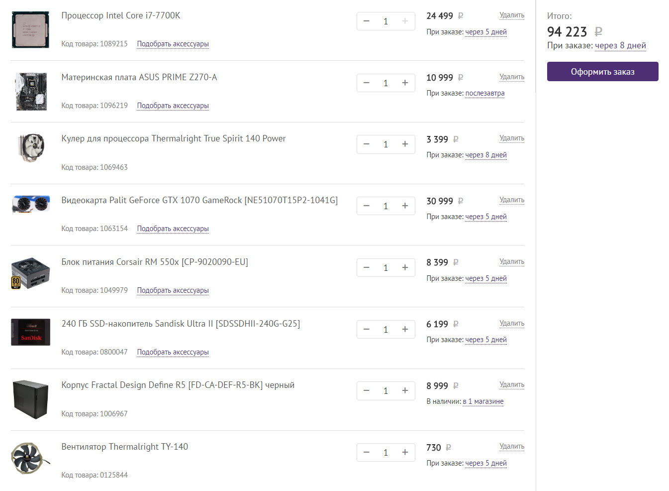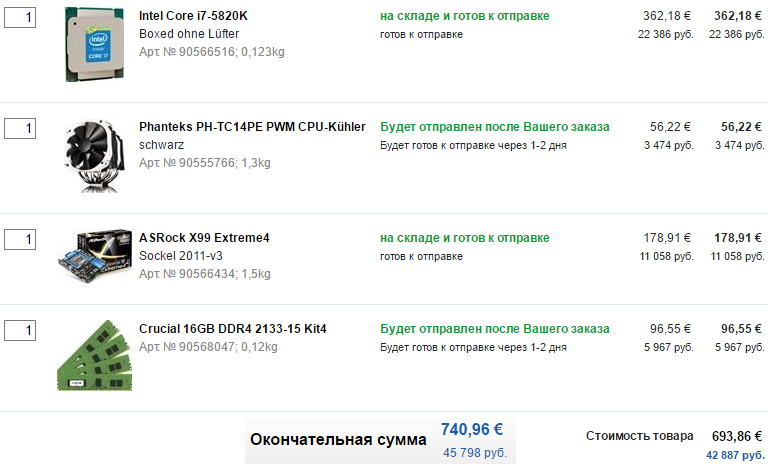 Спасибо! К сожалению, время поджимает, около двух месяцев посылка будет идти. Да и начитался о пропажах в нашей почте.С заказчиками CU были случаи. Озу и жесткий диск уже есть.