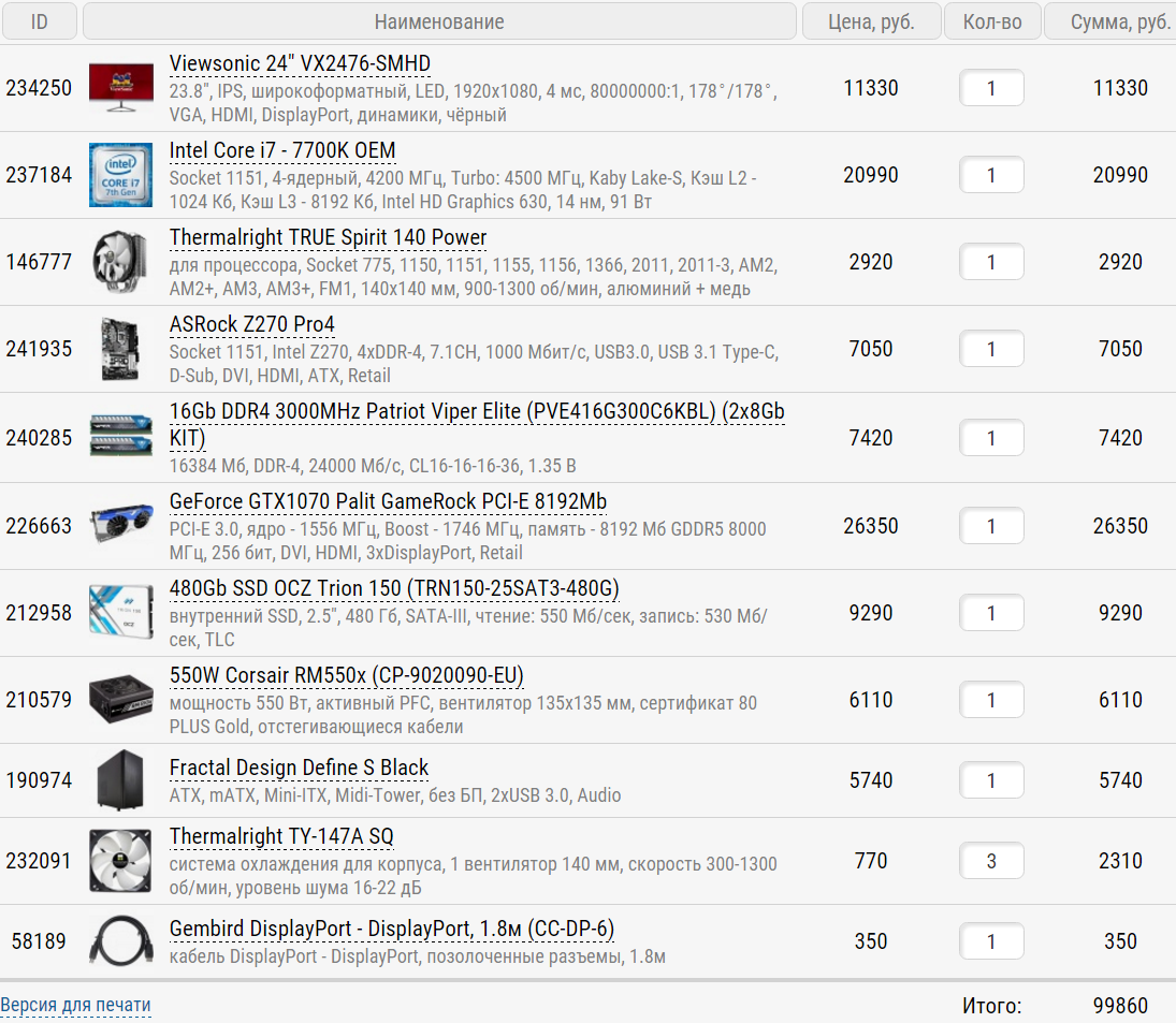 Adreno Туда бы еще пару Thermalright TY-147A SQ явно не мешало бы добавить Как и добавить 950 руб на Palit JetStream Да и БП лучше Corsair RM550x взять. Мощности и так "с головой", а вот в плане акустического комфорта получше будет.