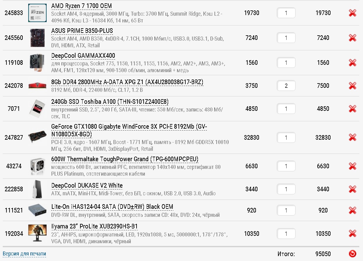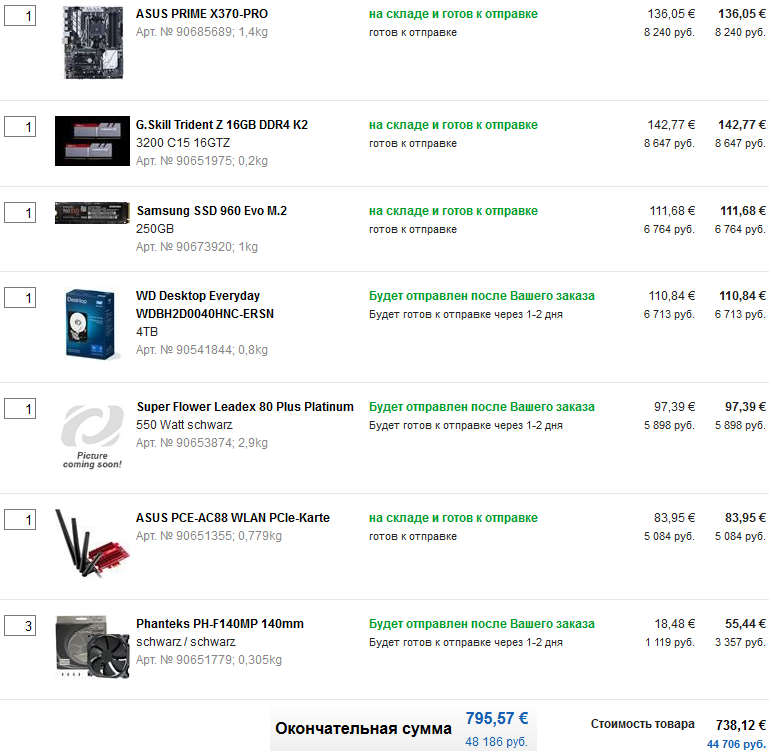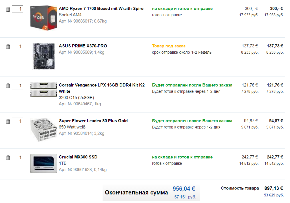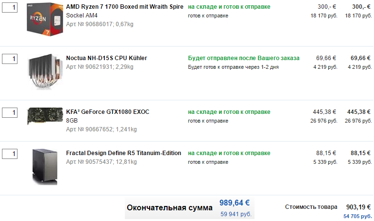 Elias зачем 1700X? Можно же обычный 1700, который дешевле и ничем не хуже. SSD для игр бесполезен за свою цену: http://techreport.com/review/22415/inte ... e-drive/10 Клавиатура приедет "Макет: США (QWERTY)" - оно тебе надо?