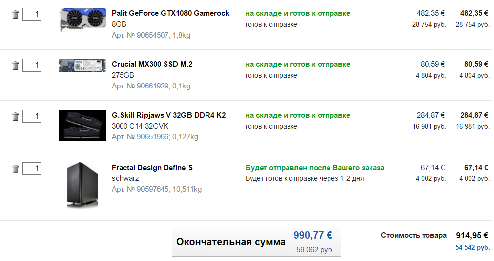 Спасибо. Блок питания есть (купленный два месяца назад, но так пока оказавшийся ненужным Corsair RM750), наверное, за этот счет можно увеличить бюджет под M.2 SSD или имеет куда-то в другое место приткнуть эти 5 тысяч?