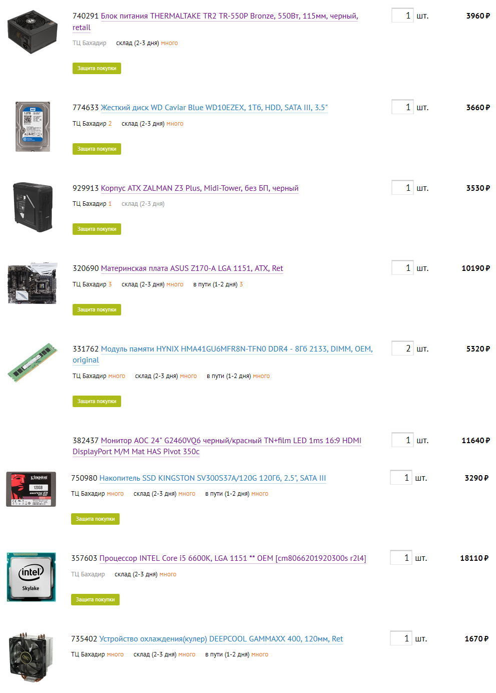 Всем привет еще раз, все-таки буду заказывать комплектующие на этой недели, требуется ваше мнение: То, что буду брать с CU: Процессор i7 6700k 21495р Мат. плата Asus z170-P 6759р Кулер Scythe Katana 4 1526р Корпус Zalman z3 plus 2604Р Бп Corsair RM550x 5682р Оперативка Kingston HyperX Fury Black Kit DDR4 (8х2) 2133 4199р ssd Samsung EVO 750 250gb 4191р