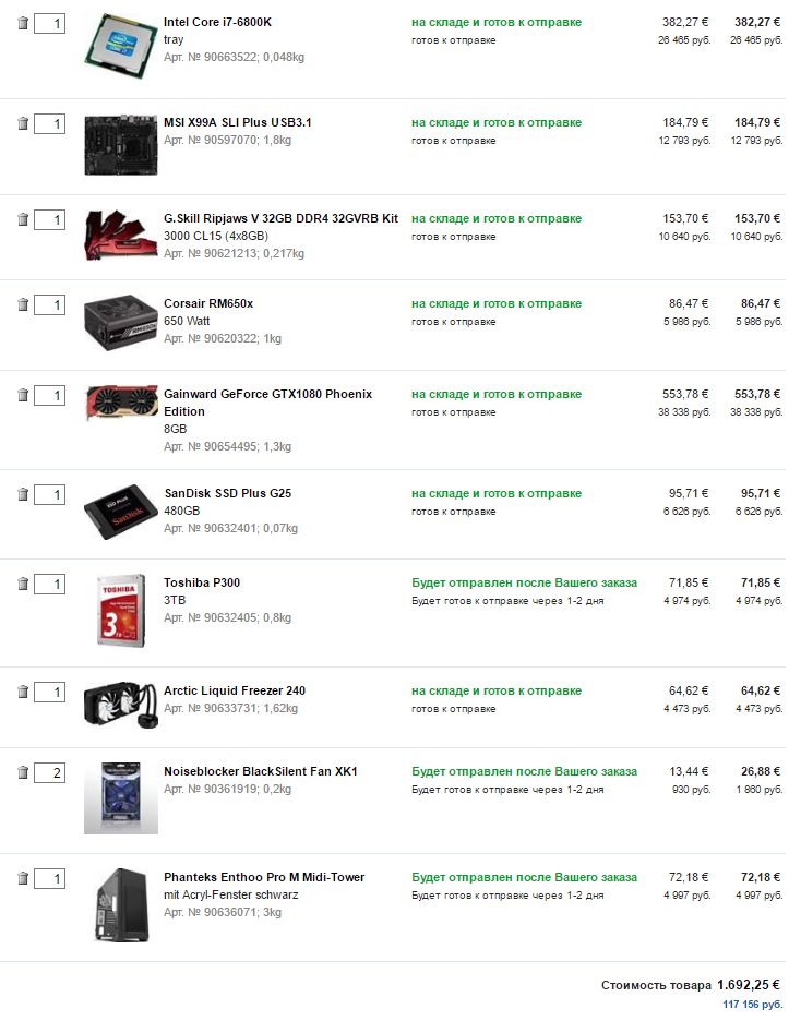 Как вариант сборки с одной видюшкой GTX1080+6800K: