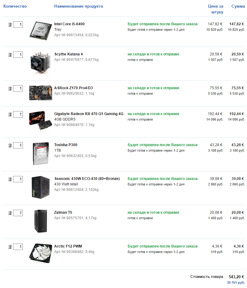 Хм.... Покурив немного инфу, 6100 очень даже выглядит на фоне 8320 судя по обзорам и в синтетических тестах, и в играх. И RX 470 на 90 Вт меньше жрет, чем R9 380. Разве что только до конца 6100 ее не раскроет. 380 у него потолок судя по тестам. Но как задел на i5-6400 или типа того самое оно. Это я к чему?! Просто на борту имеется 450 ватник и судя по калькулятору максимальная нагрузка 260-280 Ватт. Единственный минус - он уже морально устарел и кучу переходников придется ставить (с 4 pin на 8 pin для проца, с 6 на 8 для ВК и питание SATA). Вентиляторы само собой установлены. 2х140 мм, плюс напротив процессорного кулера к решетке боковой крышки закреплена своего рода труба, так что горячий воздух с проца не будет гулять по коробке и греть БП который сверху, а будет выдуваться наружу. Если не баловаться разгоном, то материнку раза в 1,5 дешевле можно. Но уж больно руки чешутся. Правда придется кулер ставить другой, боксовый не вытянет. В итоге сейчас получилось так: Проц Intel Core i3-6100 https://www.ulmart.ru/goods/3620019 МП ASRock Z170A-X1/3.1 http://technopoint.ru/product/297c87325 ... e/opinion/ ВК MSI RX 470 GAMING X 4G, RX 470, 4ГБ https://www.ulmart.ru/goods/3968844 SSD оставил 240ГБ, 2.5", SATA III, ADATA Premier SP550 https://www.ulmart.ru/goods/3748434. Итого: 36951 руб.