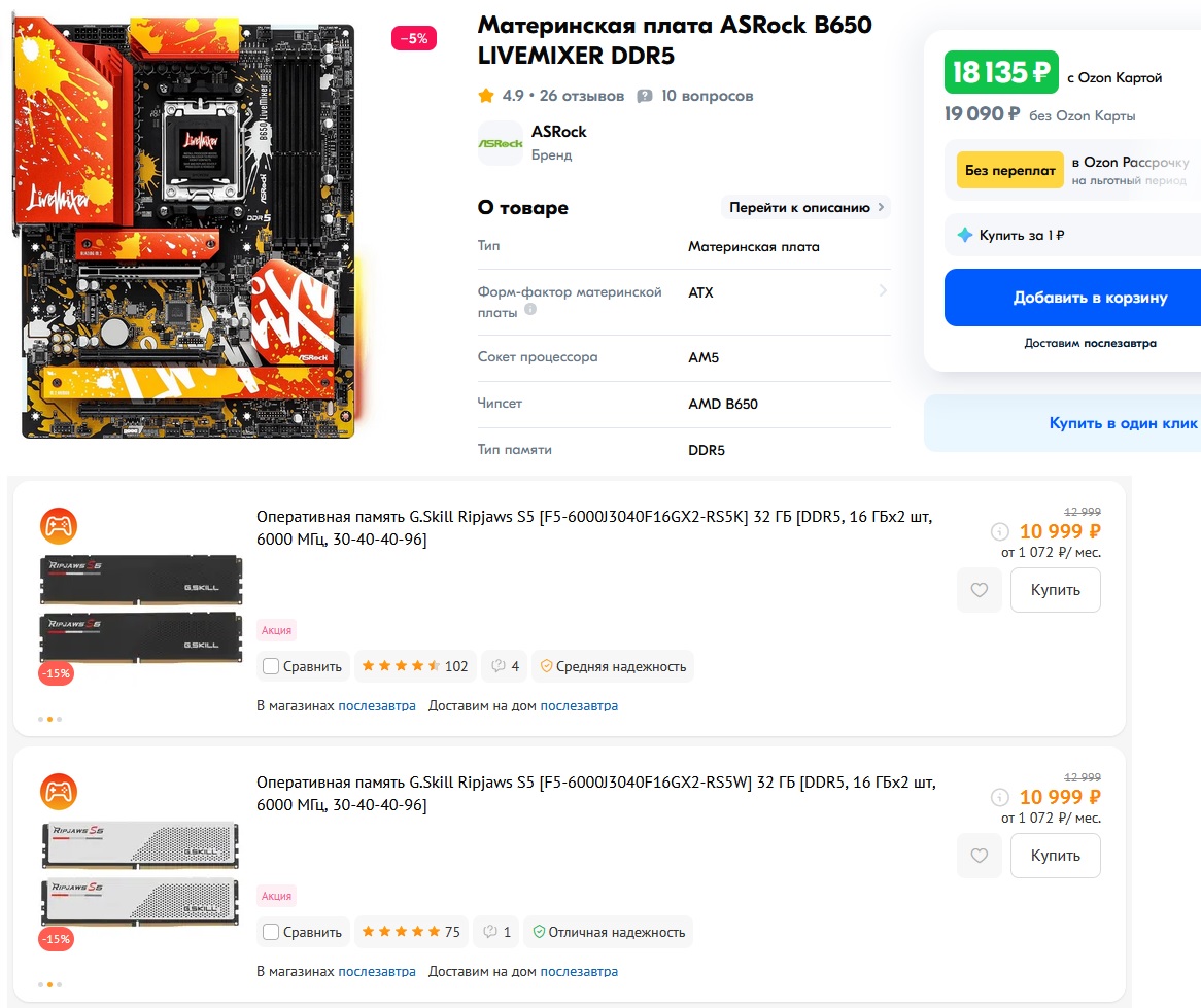 Добрый вечер. Посоветуйте материнскую плату и ОЗУ для 7500F. ОЗУ гнаться не будет, материнскую плату с запасом под апгрейд года через полтора. Бюджет до 50к с процессором.